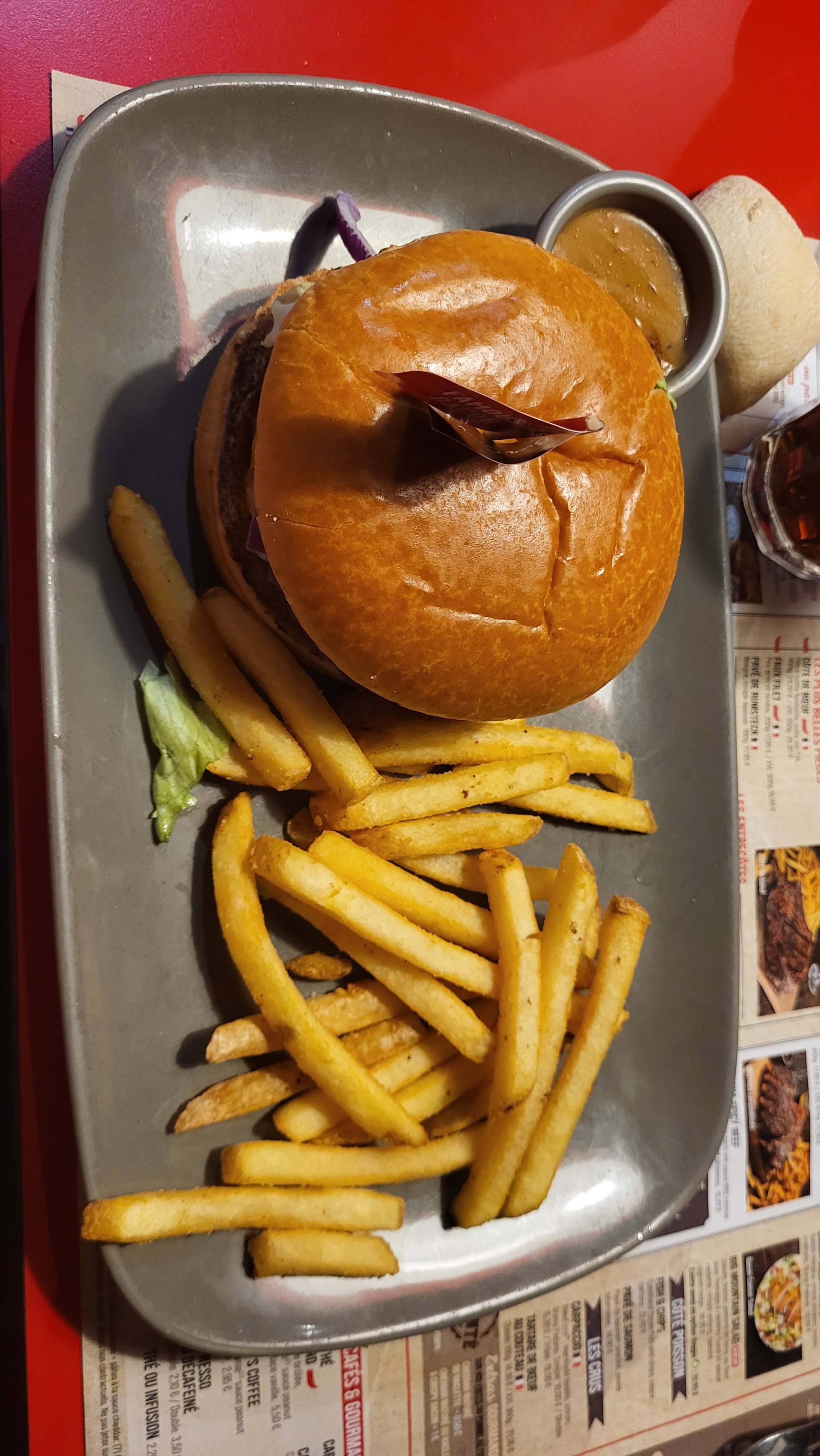 Je m'y suis rendu pour la troisième fois de la semaine,le souvenir de leur viande savoureuse et des frites croustillantes mon donné envie ! Demalheureusement la qualité n'était pas au rdv,la viande pas bien cuite était dur comme de la semelle et les frites blanches et grasses. En temps normal je n'ose pas me plaindre mais là franchement c'était limite pour mâcher la viande et la déception de ne pas trouver l'excellente qualité dont j'avais l'habitude m'a motivé,Mahaut qui m'a accueillie avec soin a fait preuve de professionnalisme , et elle a dû s'apercevoir de ma déception,elle est tout de suite venue me proposer de changer mon plat... Et là je n'est pas été déçu ! La viande tendre et parfaitement cuite comme j'en rêvais.jai fini mon repas avec la coupe creamy bananut qui vaut le détour .un excellent restaurant que je retrouve avec plaisir à chacune de mes visites dans la région . Je vous conseille . Merci a l'équipe sympathique et à Mahaut qui a été aux petits soins pour me servir ! Trois mois plus tard tjrs top,la viande un peu moins tendre mais je recommande tjrs, c'est ma cantine quand je viens sur la région ! Dimitri m'a servi avec soin et professionnalisme