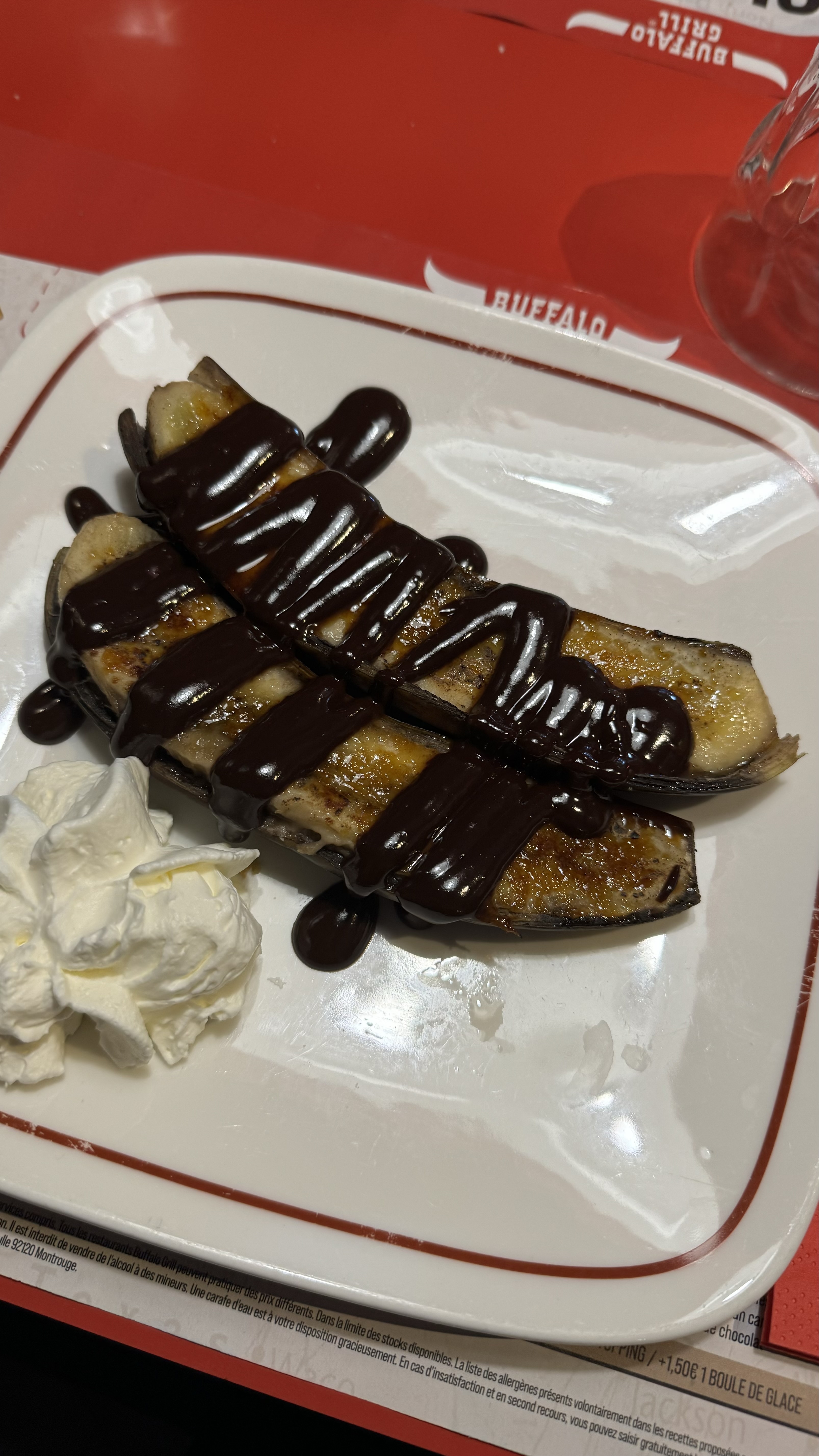 Je me suis rendu à ce Buffalo dimanche honteux !!! Nous sommes habitué à venir mon mari prend des ribs à chaque fois sa fait la 3eme fois que l’assiette arrive avec une viande tiède ! Alors qu’on précise bien à chaque fois bien chaud donc nous mangeons en décalé à chaque fois nous avions demander du riz on l’a jamais u à table, pas beaucoup de monde dans le restaurant mais 35 min pour nous servir 4 plats je trouve sa super long pour pas avoir beaucoup de monde et je demande au monsieur de l’encaissement un geste commercial ou quelque chose le monsieur me calcul même pas je lui dit que le repas n’a pas du tout était il m’ignore toujours un monsieur cheveux rasé a lunette et je lui dit que c’est la dernière fois qu’on mettra les pieds ici toujours aucune réponse !! Il doivent pas courir après les clients cela . Très déçu compter sur moi pour vous faire de la pub ! Je ne peux pas mettre un nouveau commentaire car j’ai déjà fait. Voici mon plat d’aujourd’hui. Livraison par Uber. J’appelle Buffalo pour avoir le patron et lui expliquer. Il me dit que c’est normal ça a l’air un peu brûlé sur le dessus mais on peut les manger à l’intérieur c’est une blague c’était le dernier essai dans ce restaurant qui, pour moi les prix ne sont pas du tout à la hauteur des prestations très mal servi et en plus pour terminer servi avec de la salade sans sauce. On m’a pris pour un lapin je pense. Intolérable. Bonne appétit 20 octobre 2023