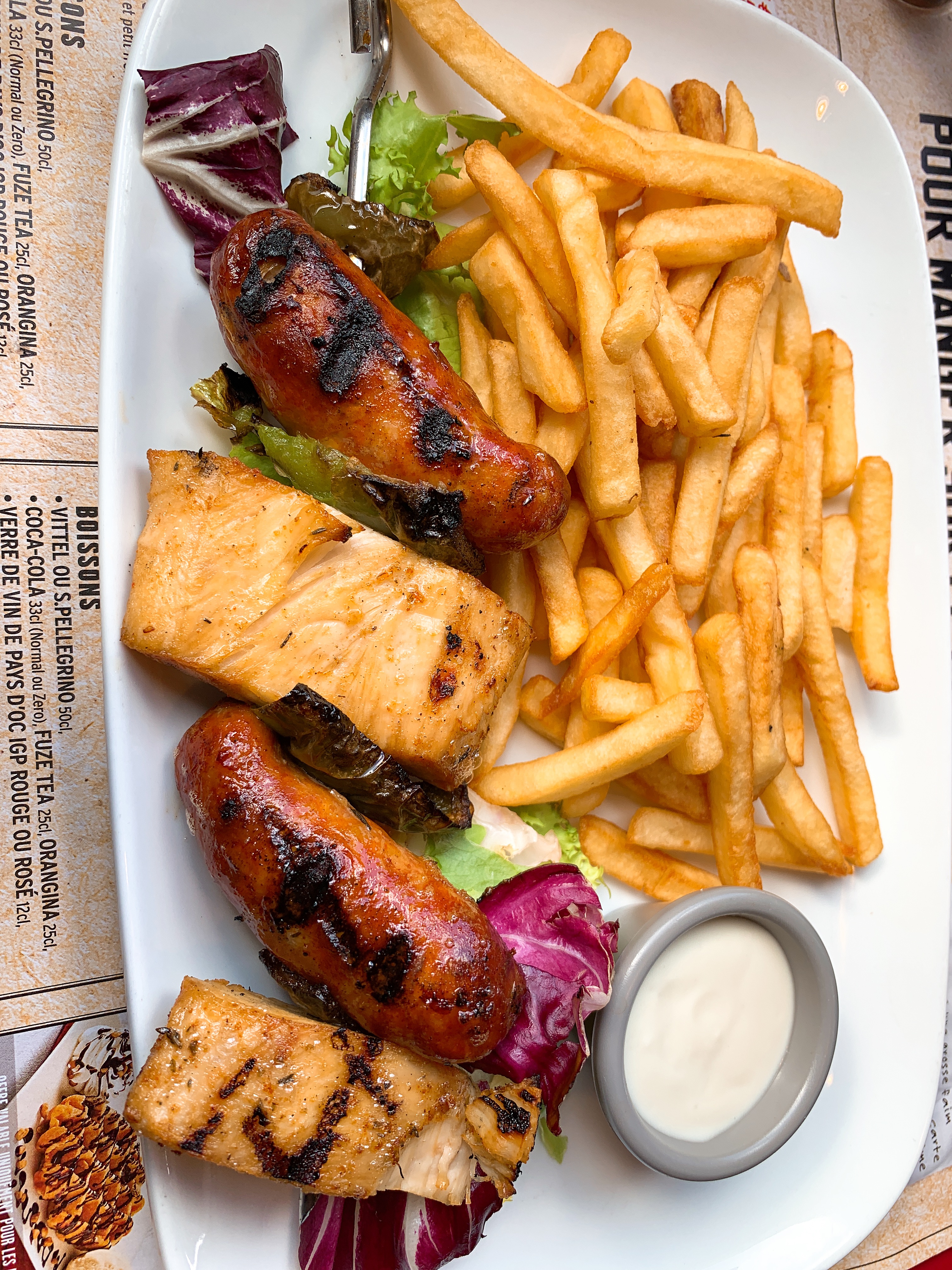 Repas à peu près correct(mon compagnon avait pris une cote de boeuf mais arrivé chez nous il avait encore fin😖😕☹️) par contre service plus que rapide... nous étions dehors en à peine une heure. On se serait cru à l'usine! Mais serveuse en formation très sympa.