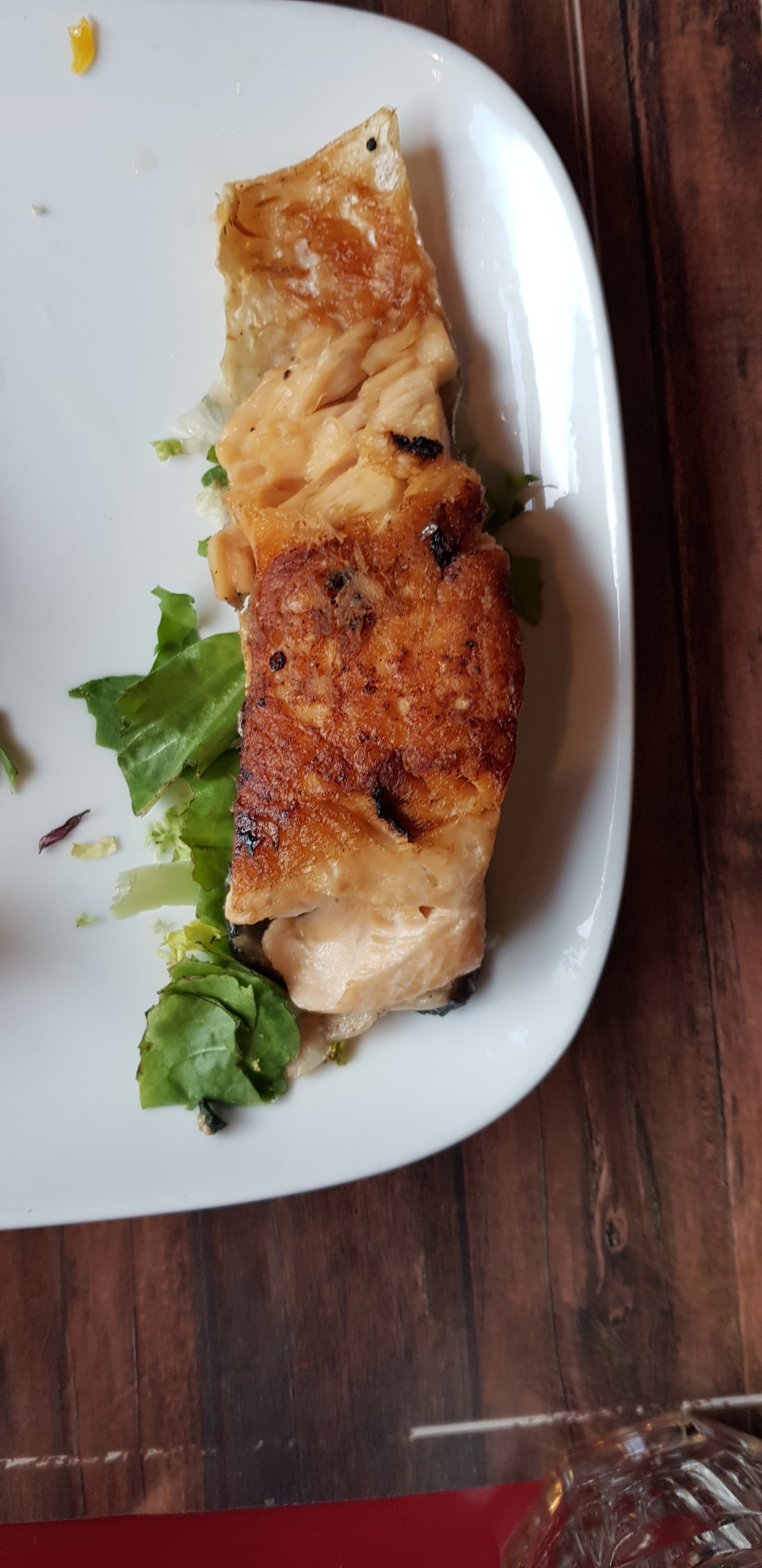 Le saumon et a fuir photo 1 assiette servi tel quel a 15 balle l'assiette je dit au serveur que c'est inacceptable de servir une assiette comme ça à ce prix-là donc je demande si c'est possible de changer il part voir le chef qui lui répond que c'est normal je lui dis qu'il est hors de question que je mange ça il me propose d'abord de changer de plat je ne suis pas contre et en définitif il me dit que le chef cuisinier va cuire un autre bout de saumon de conserver mon assiette il m'amène le saumon dès que c'est cuit résultat après avoir attendu une dizaine de minutes une assiette arrive photos deux avec un saumon qui et ridicule trop cuit cramé sur le dessous