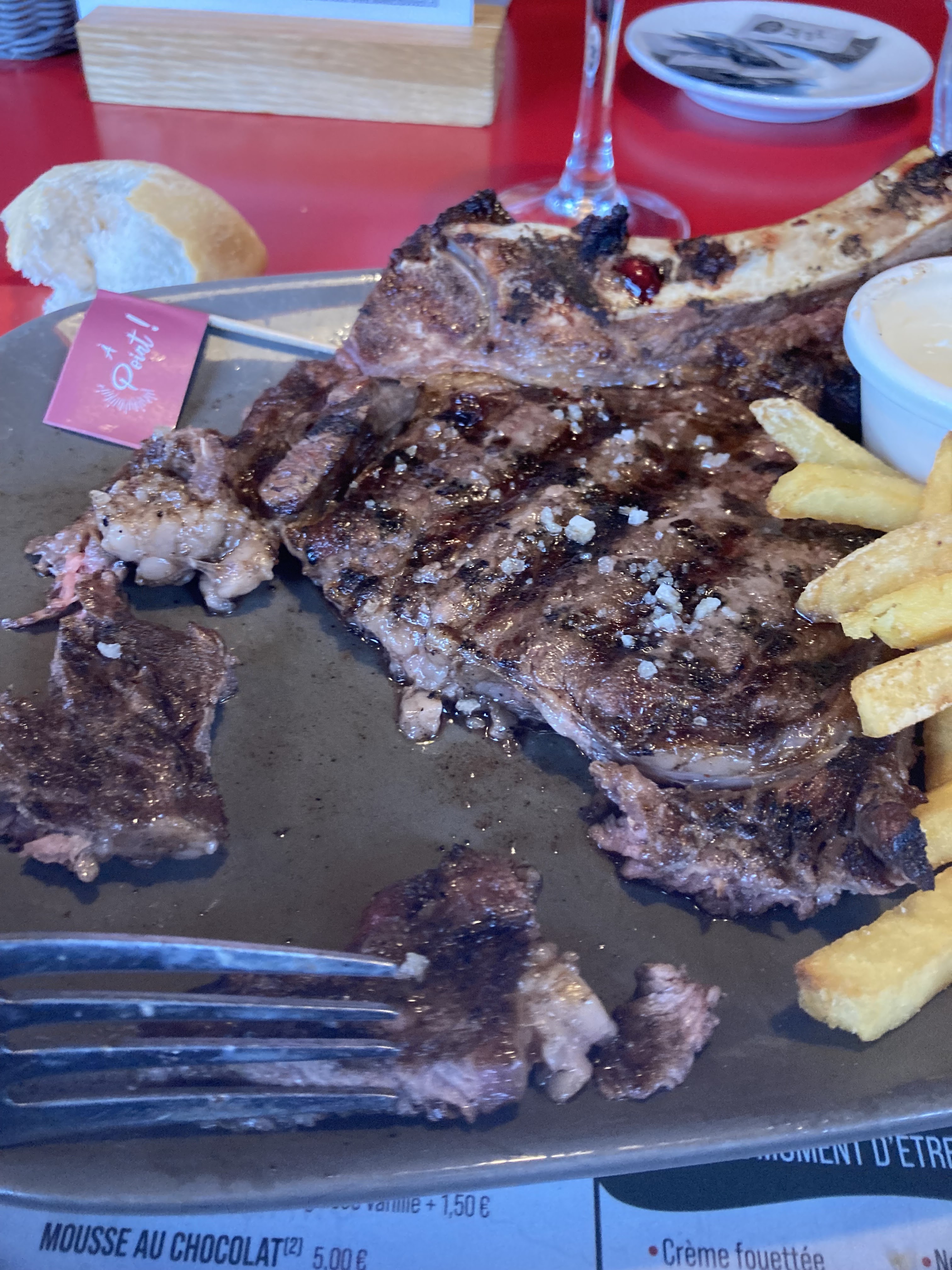 Deuxième fois pris de la viande dans ces lieux en espérant que la nouvelle carte apporte de meilleure qualité. En effet côté de bœuf XXL 550 grammes commandée, reçu dans une petite assiette noire, une côte de bœuf qui devait faire à peine les 400 grammes. Très déçu, envore plus en goûtant la viande très fade et froide, et biensur impossible de demander à vérifier.... Après on a juste demandé un café gourmand et un café liégeois, alors là chantilly bonne, mais les cafés sont eux aussi froid. On avait déjà l'addition sur la table sans avoir commencé notre dessert.. Ne perdons plus de temps et partons sans embêter notre serveuse très accueillante, serviable et souriante.....