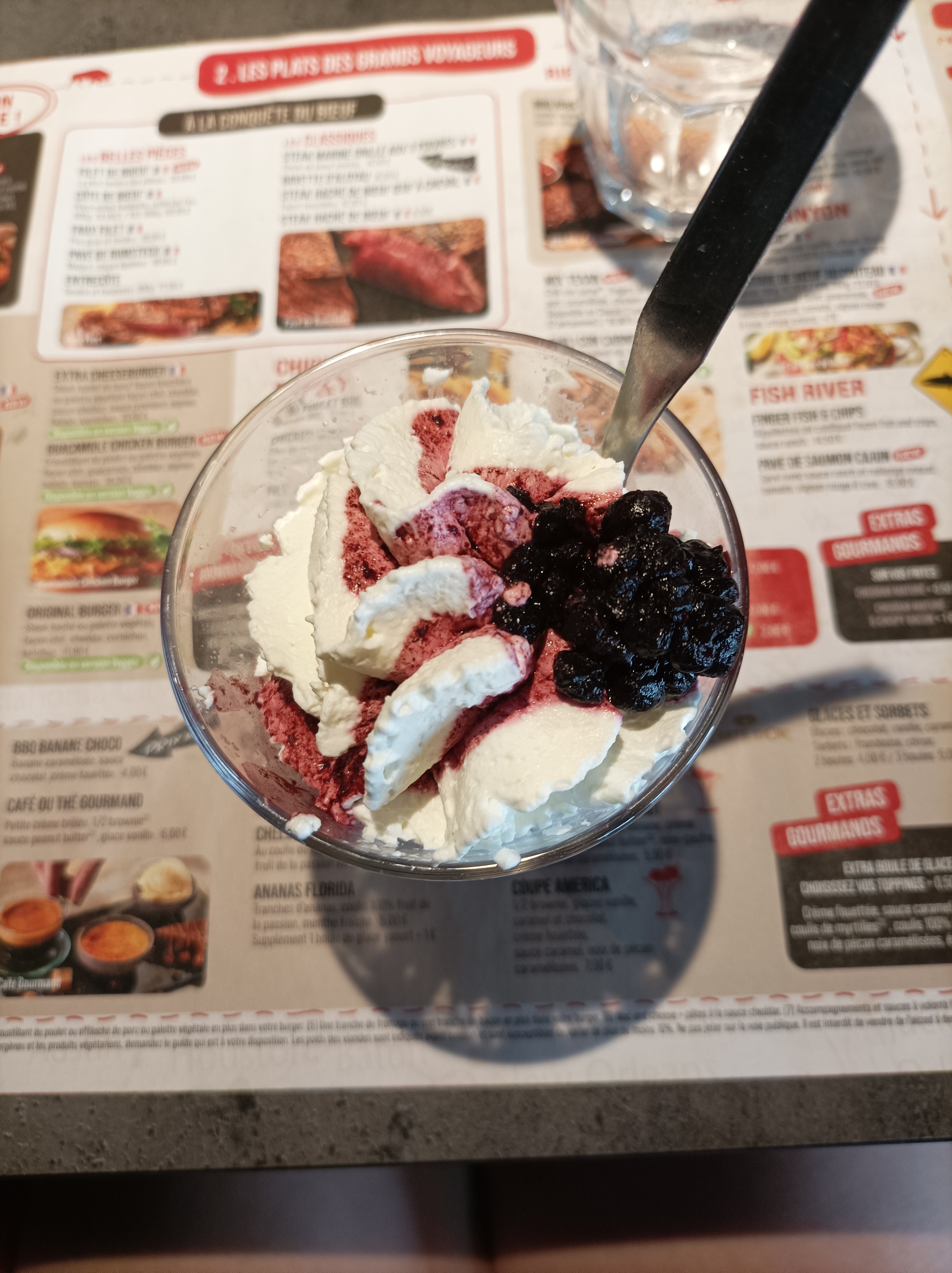 Très bon service avec le sourire. Très bon repas, nous avons pris des ribs et une bavette d'aloyau. Et surtout la coupe America qui était succulente ainsi que le café gourmand Nous conseillons vivement !!!!