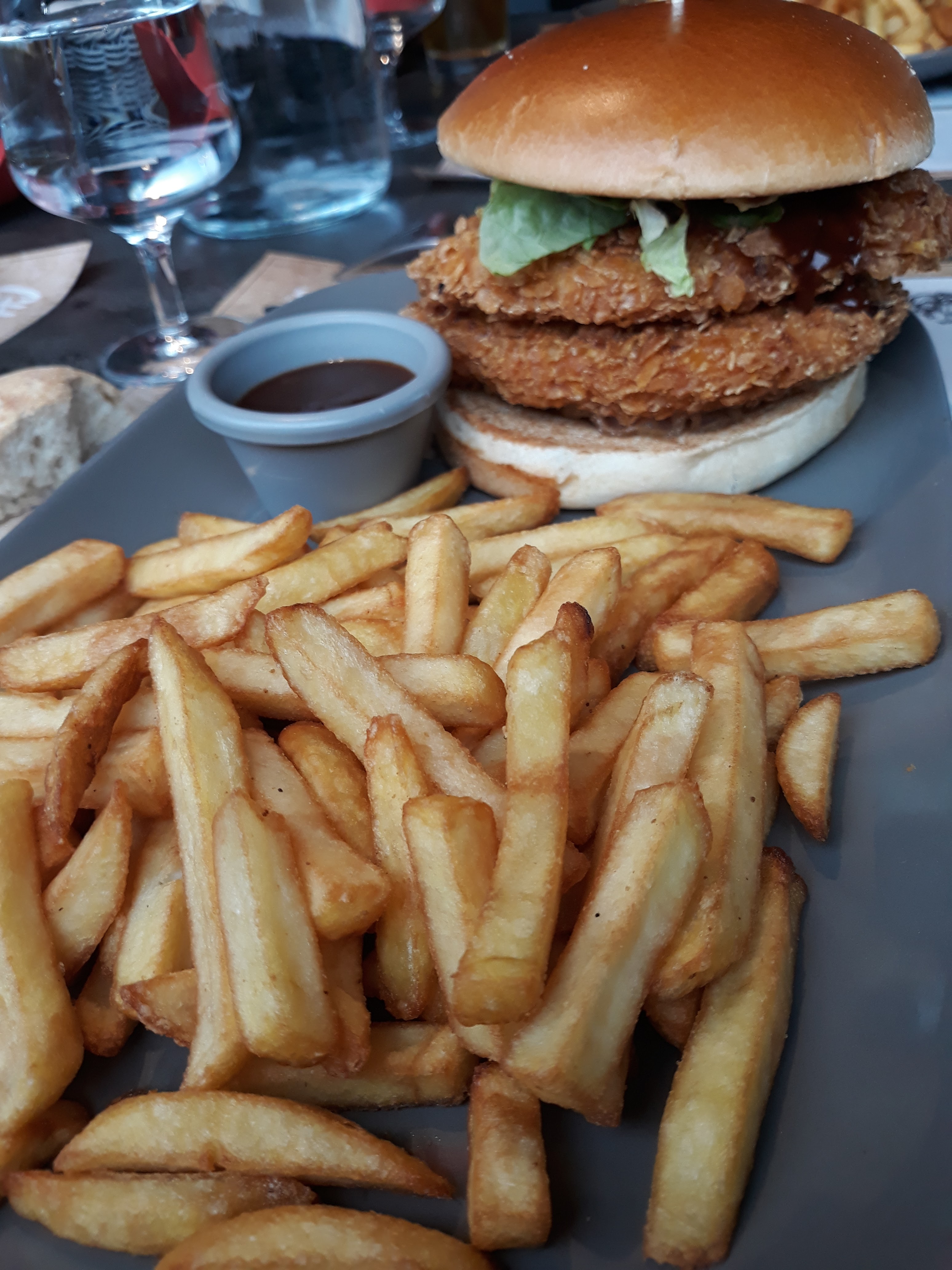 Un Burger tout à fait banale avec quelques frites qui se promènent. Rien d'exceptionnel. Les toilettes sont à l'étage, compliqué pour les personnes en situation de handicap. Je n'ai pas demandé si il y avait une autre solution, à voir!