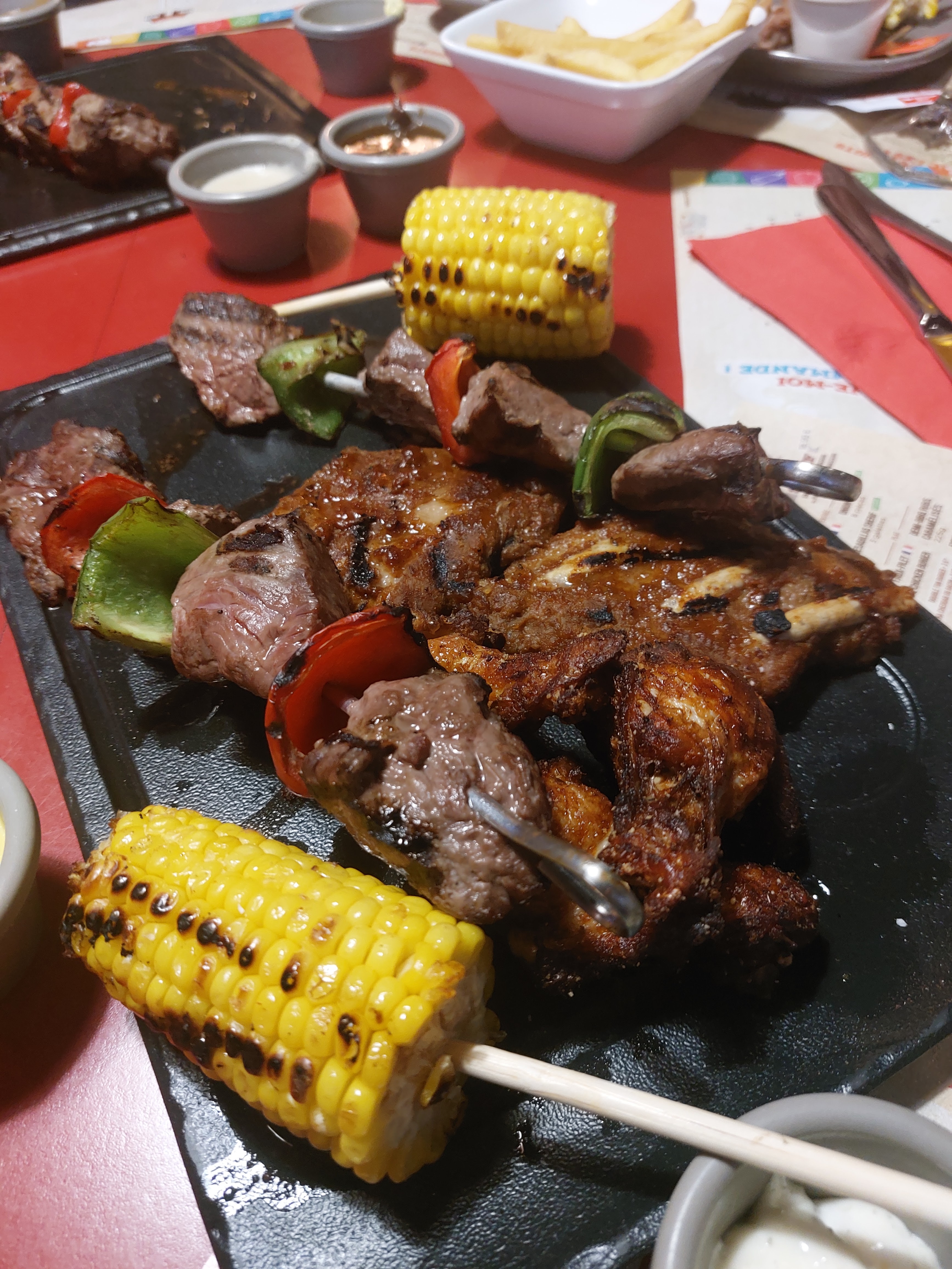 Un restaurant avec une carte variée, pour les amateurs de viandes principalement à des tarifs raisonnables. Une déco et un cadre agréable. Un personnel sympathique et souriant. Bref rien à redire sur le repas partagé ci ce n'est à refaire 🍴👍