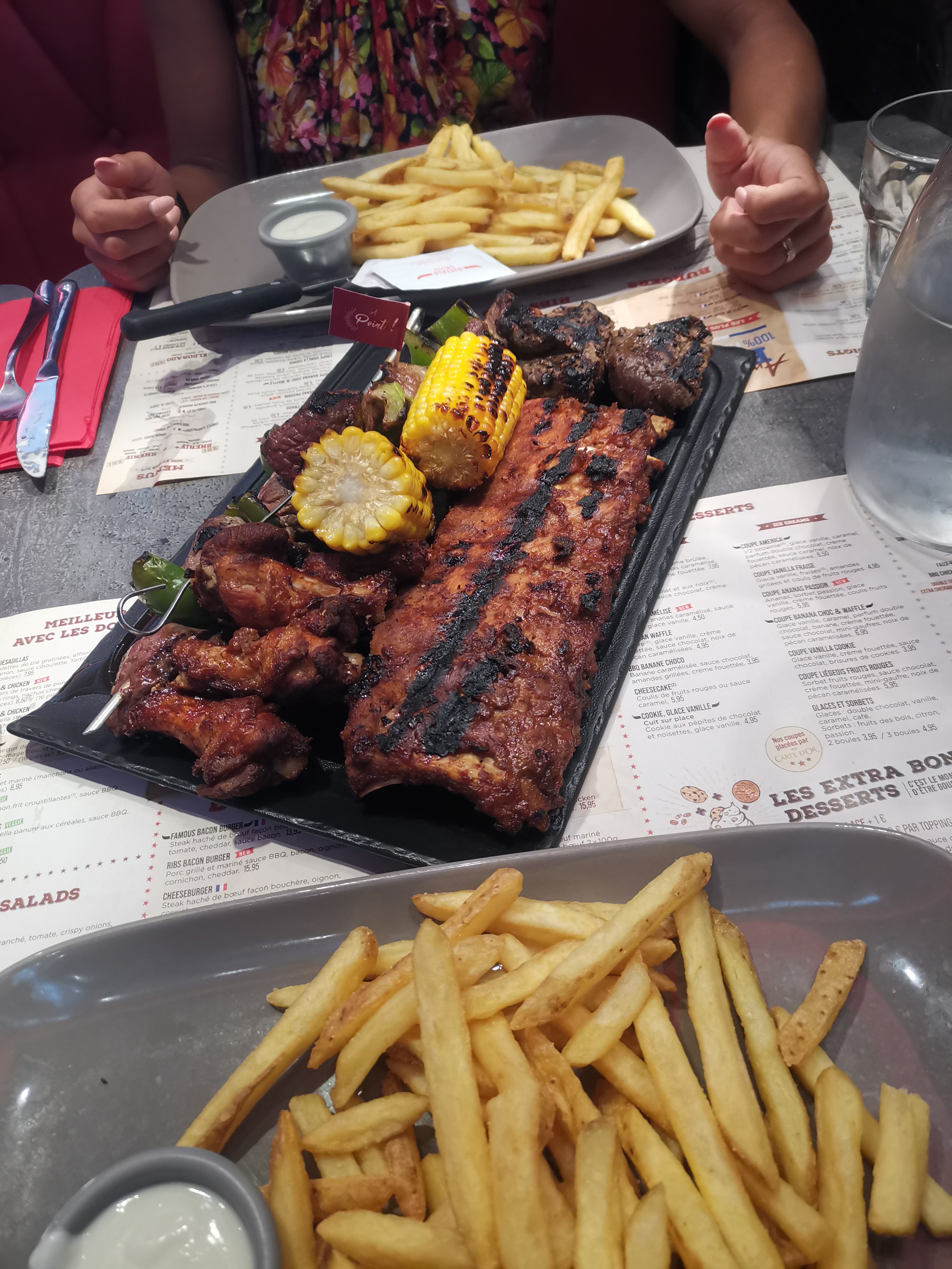 Nous sommes allé manger deux fois dans la semaine, et c'était très bon. J'ai goûté un petit morceaux de ribs dans un mix de viande, et j'y suis retourné pour en prendre des XXL! On s'est régalé, et le personnel est très souriant. Les prix sont correct, et les portions sont copieuses.