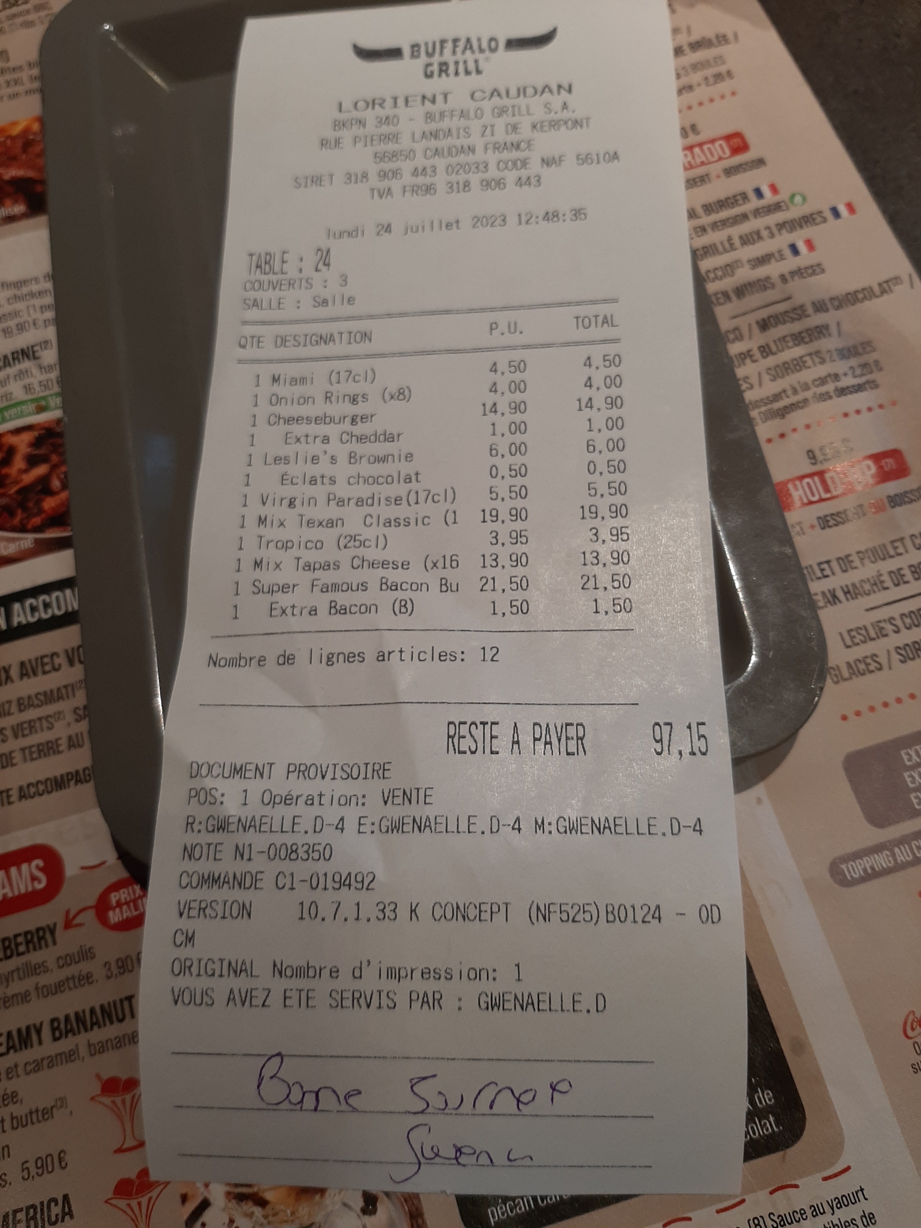 notre serveuse Gwen était super agréable,ça fait plaisir.. bientôt