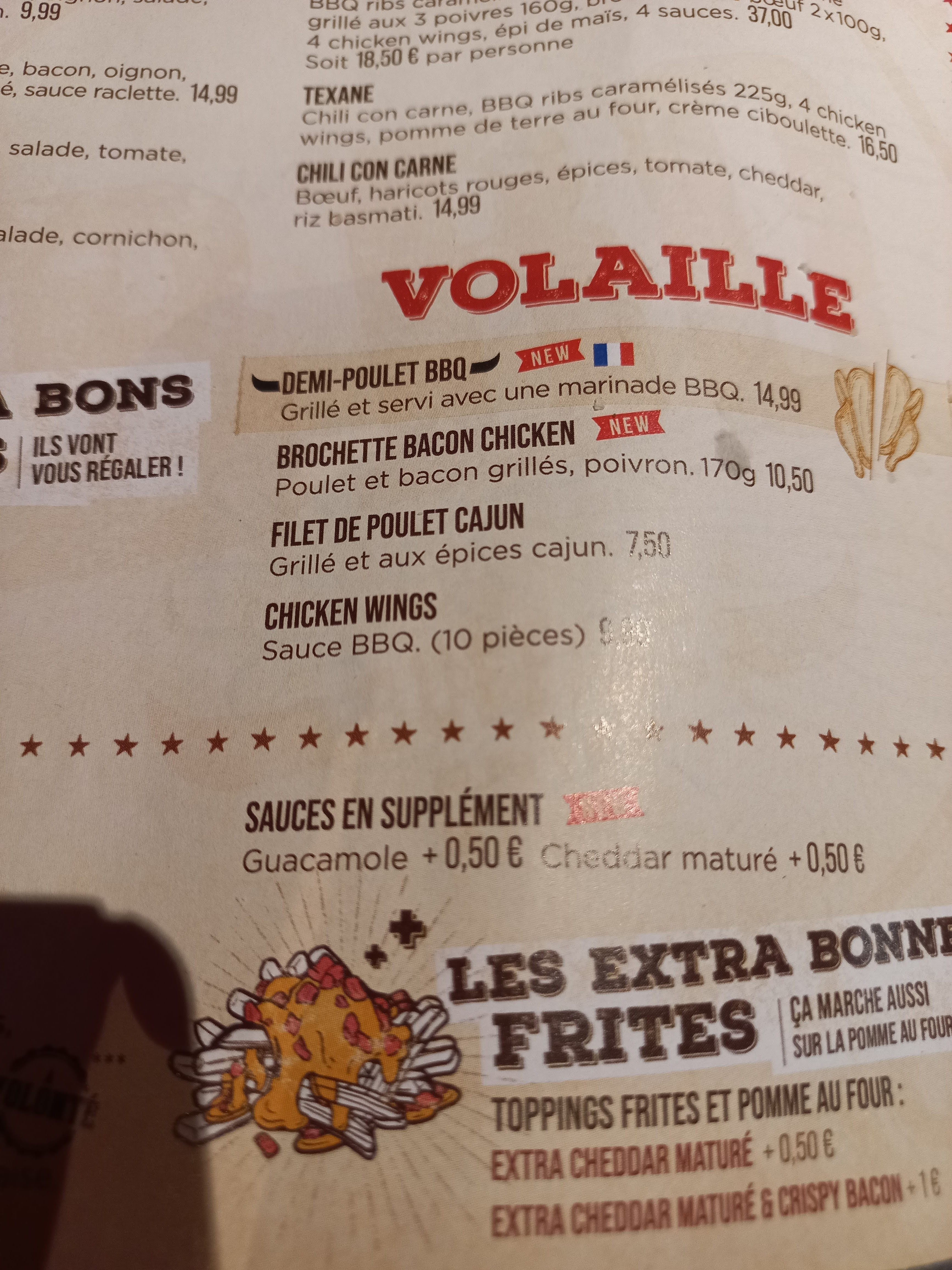 Mars 2024, pas top encore une fois, accompagnement froid, et 🥩 hyper dure, dommage. Service rien à dire Septembre 2023, coca température ambiante sans verre avec glaçon, Le chili réduit en quantité…..encore une fois déçu. janvier 2023 déçu ce jour un plat arrivé complètement froid limite sortie du frigo, je demande a le réchauffer. Je suis passer de froid juste tiède. 😔