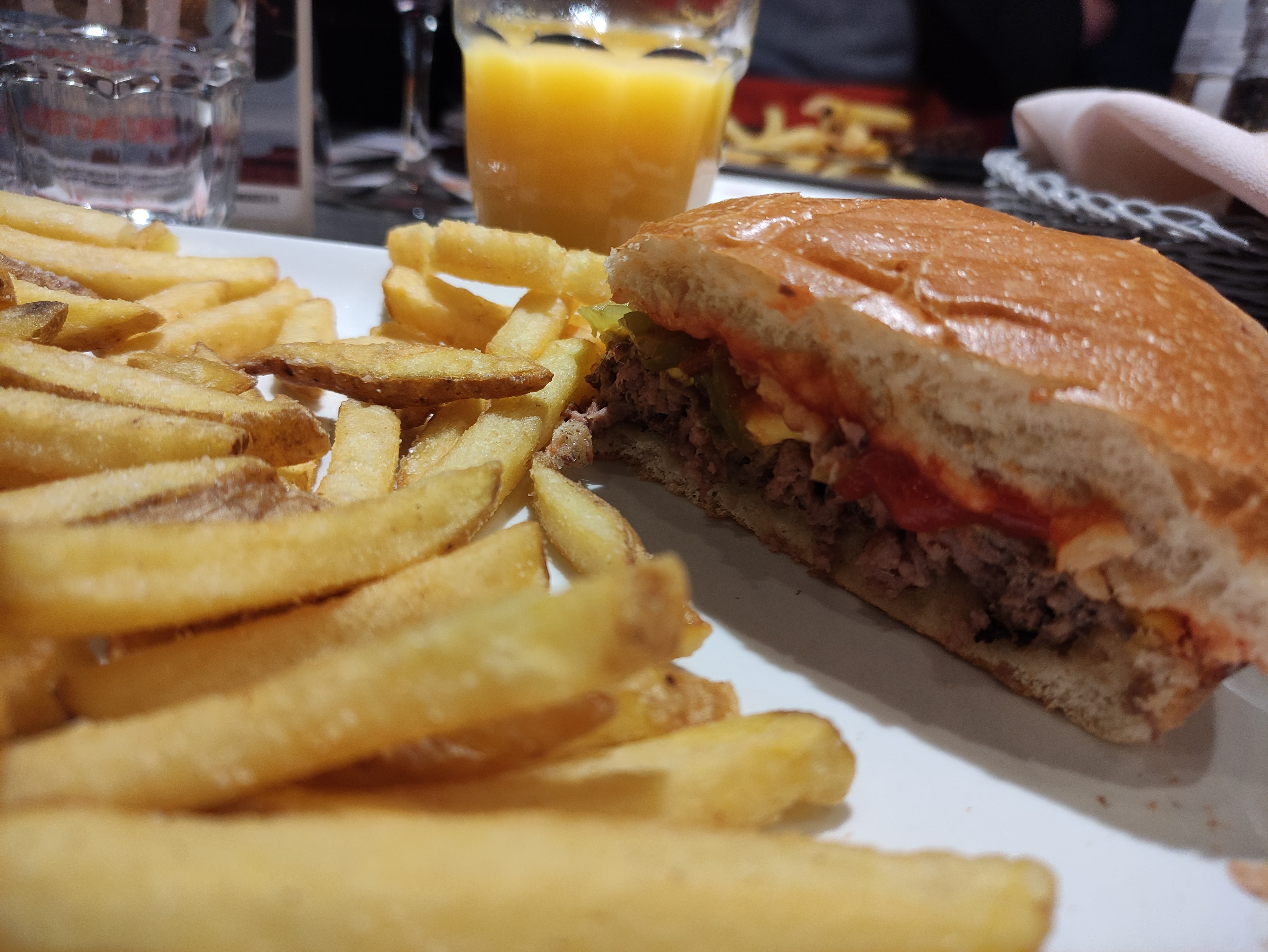 Tout va bien pour un dîner d'amoureux! Tout est délicieux, le poisson et la viande rouge sont bien tendres et les frites bien moelleuses !! Les serveuses sont sympas. Il y en a pas mal de jeunes, courage pour elles!! En somme, tout est top! 27/8 On est retourné y manger Oh que nous nous sommes bien régalés L'hamburger était trop bon, accompagné de délicieuses frites ! 🤤🤤🤤😋 Et le dessert aussi bon! La Servante qui nous a servi, est très sympa. Elle nous a laissé un gentil message sur l'addition! Merci à elle! 😃👍