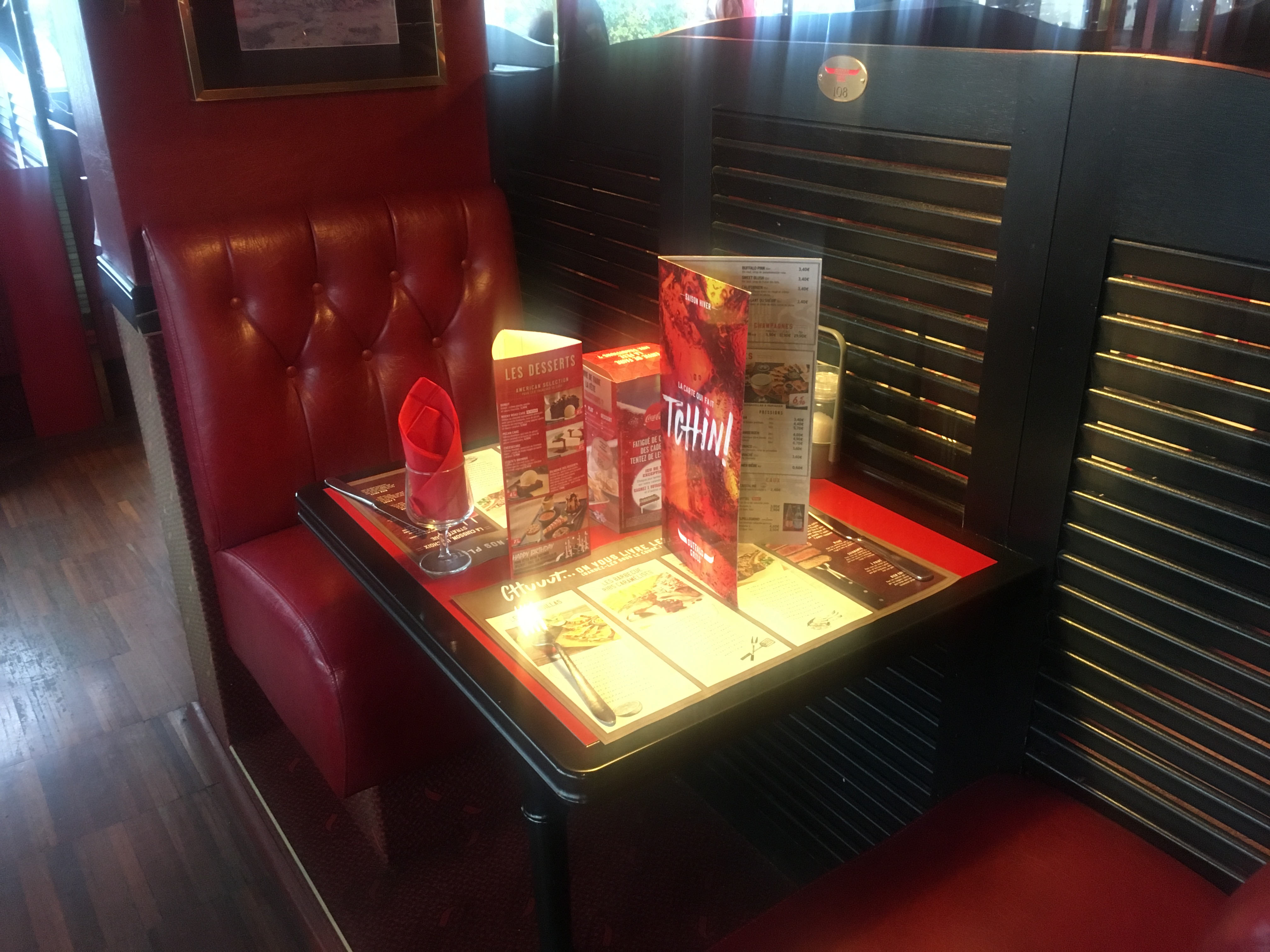 venu pour manger le fameux menu de noël , qui n'est rien ! une bière , une poignée de frite un steak goute brulé et une glace ! quant a l'ambiance zero !! ambiance cantine sans musique ! du coup je ne mettrait jamais plus les pieds dans un buffalo !! fini !!...j'ai mis 50 euros a la poubelle pour rien manger !!