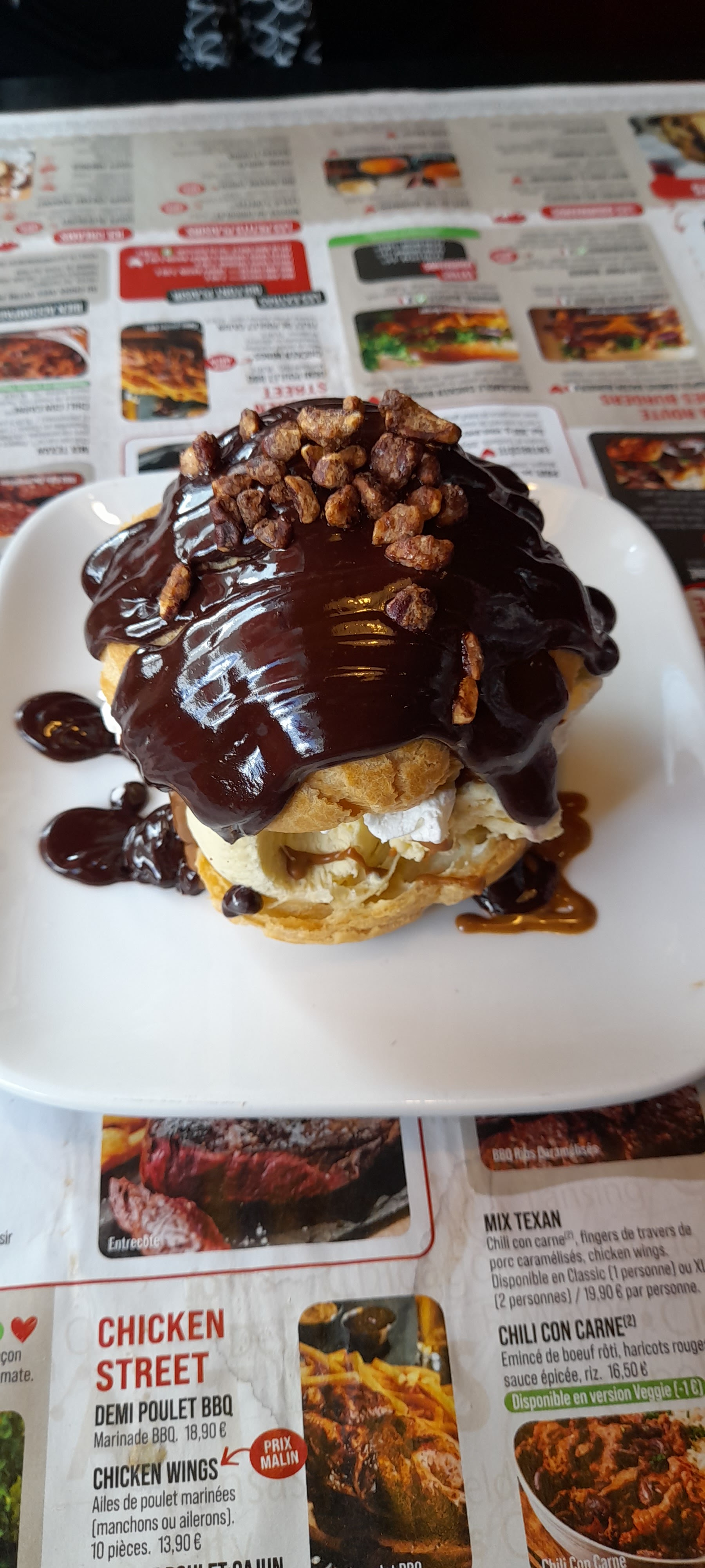 Franchement je voulais faire plaisir à mes proches en les invitants et très déçue des proportions ds nos assiettes respectives. Franchement tout augmente au niveau prix mais dans l'assiette tu n'as pas grand chose, c'est l'assiette des polypoquettes. Tu demandes plus de frites on te fait payé un supplément pr une poignée de frites ridicule, c'est abusé. Les desserts idem rien ds l'assiette, alors heureusement que ns avions pris une formule car vu le prix du dessert individuel et le résultat au final ds l'assiette, une déception navrée de le dire. De plus, pas de pomme de terre au four en étant venu le midi entre 12h30-13h. Enfin, le buffalo n'a plus rien à voir aux années précédentes, cher pour ce que c'est même si vs prenez une formule plat+dessert+boisson. Tjrs des suppléments à payer pour s'en mettre plein les poches.
