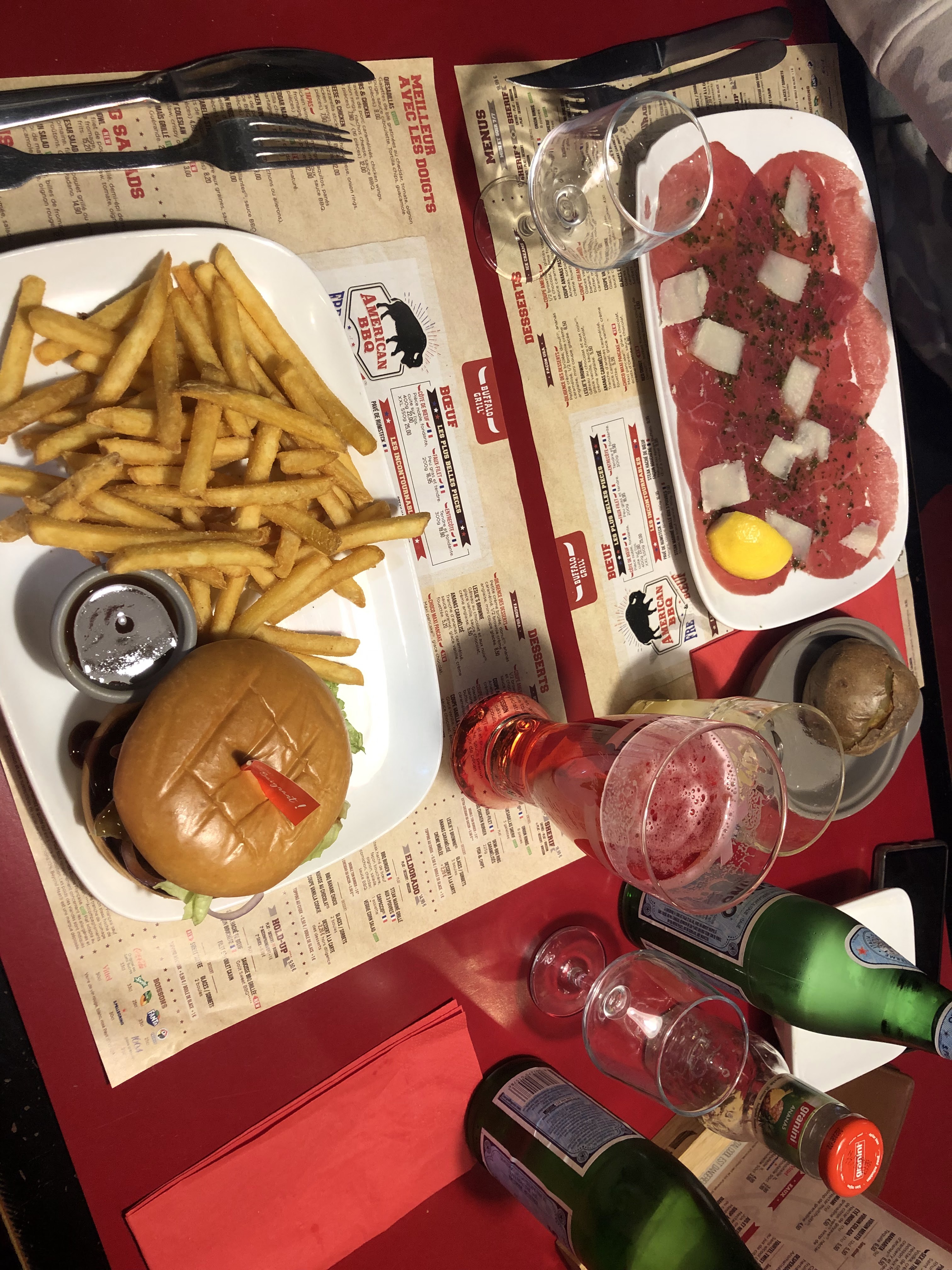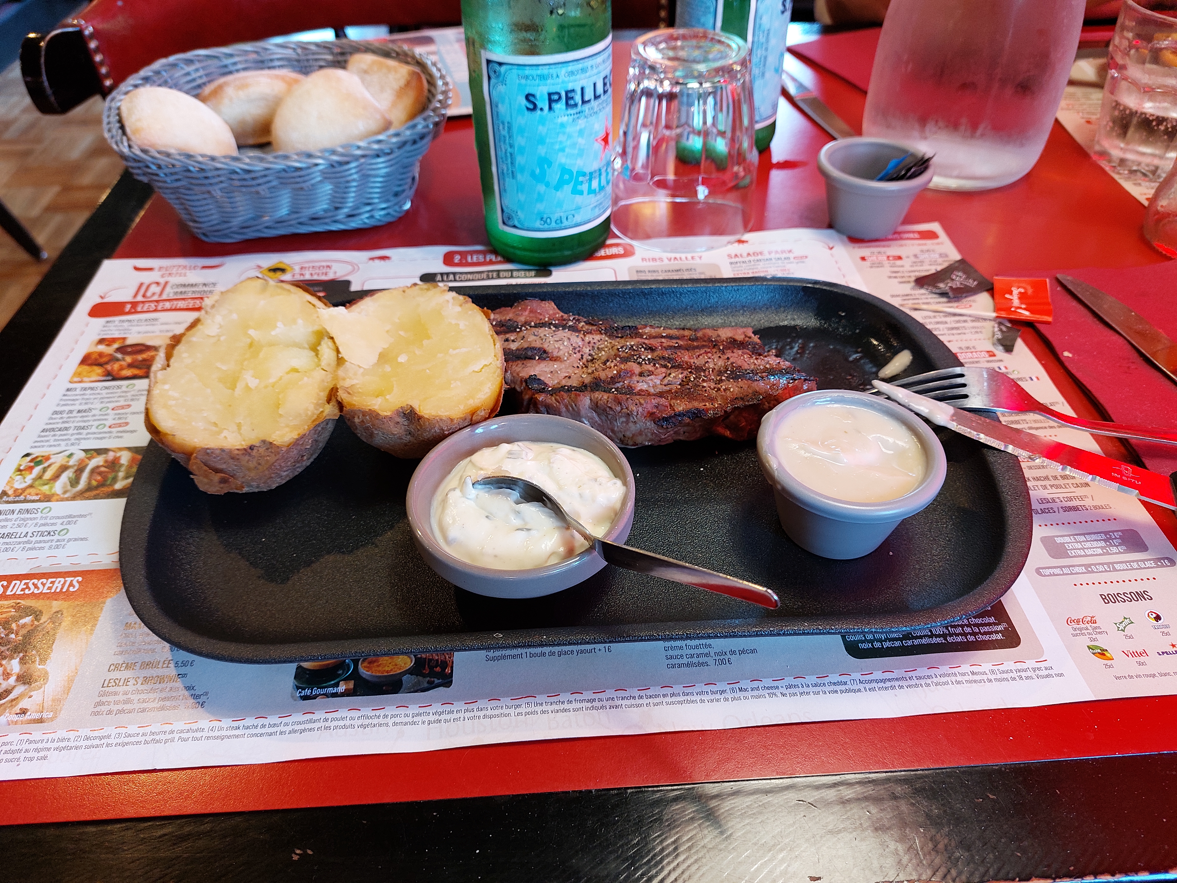 Que dire ! Oubli de servir l'apéro 😕. Les frites bof, et pomme de terre au four pas terrible. Cuisson des viandes parfaites, merci au cuisines. Service sans entrain, ambiance tristounette, personne pour encaisser l'addition. Nous nous sommes manifestés auprès des cuisines, nous étions plusieurs clients en attente d'encaissement. En espérant retrouver l'ambiance des Buffalo.