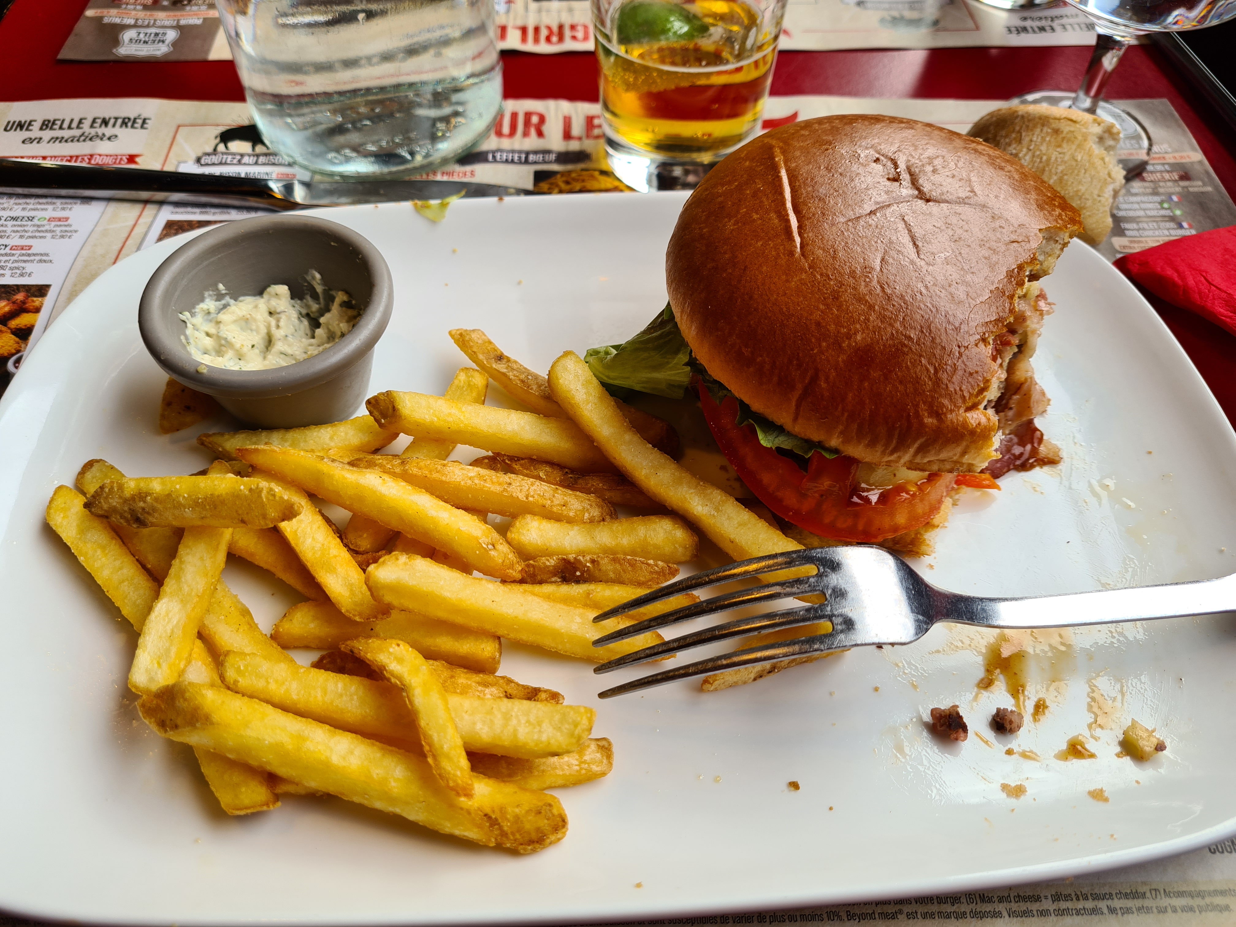 Très déçue, steak trop petit, pas de pain, on demande le burger sans cornichon et heureusement qu'on a regardé il y en avait on a demandé du ketchup mais pas eu, frites trop cuites et le sourire de la serveuse il est en option certainement bref je ne vous conseille pas ce restaurant vraiment trop à la chaîne