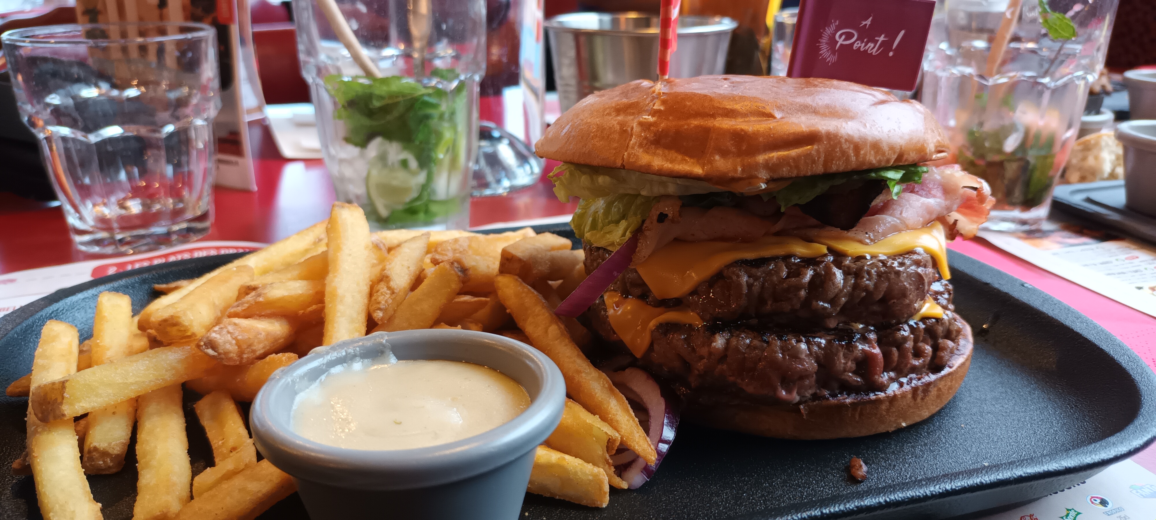 Nous sommes un peu déçu : Attente trop longue , Cuisson des Viandes pas respecté , bacon pas cuit . Accueil limite , impression de gêné, Obligé d'aller chercher l'eau soit même. Je pensse qu'ils manque de personnel (dure à trouver)