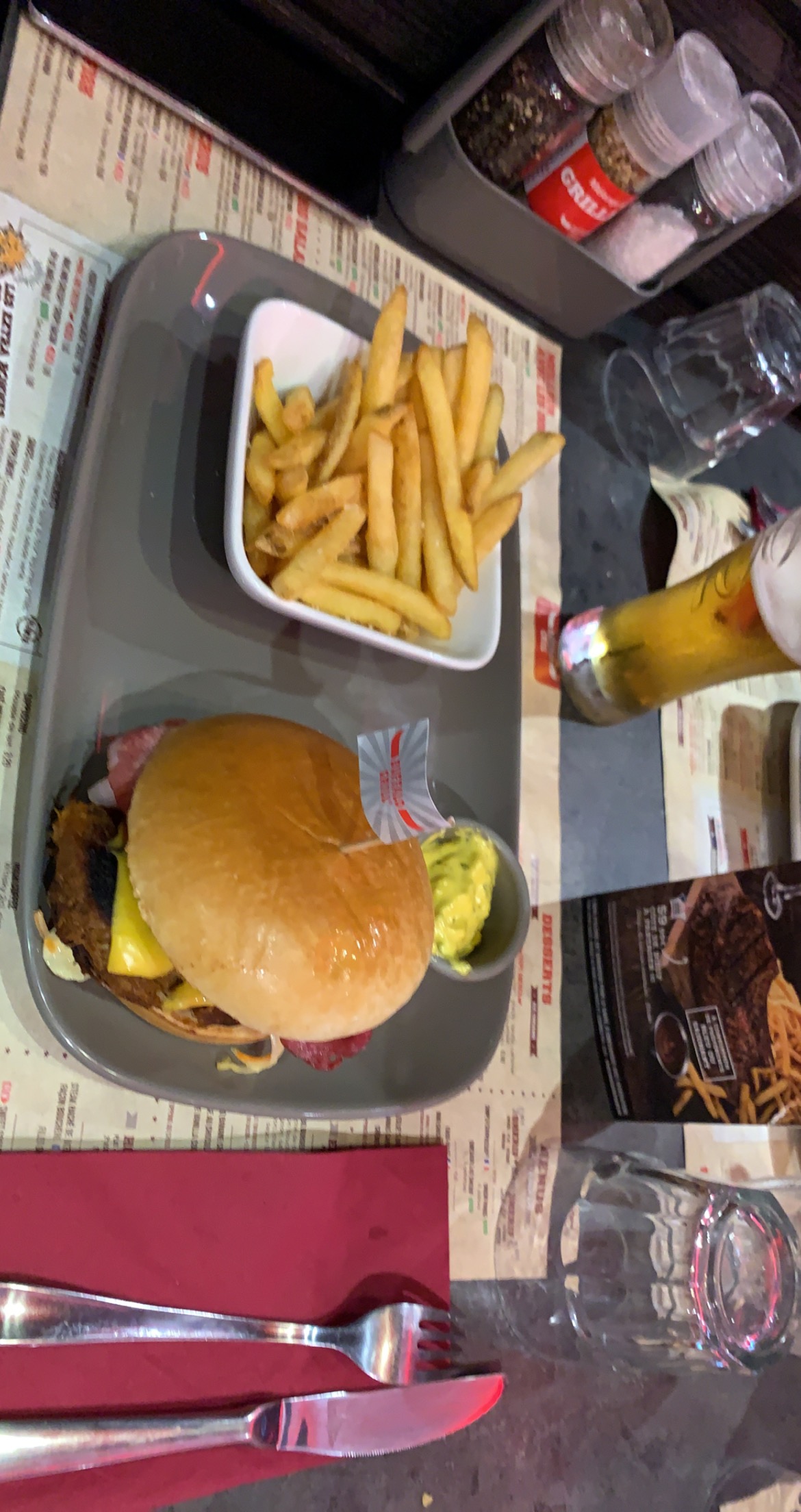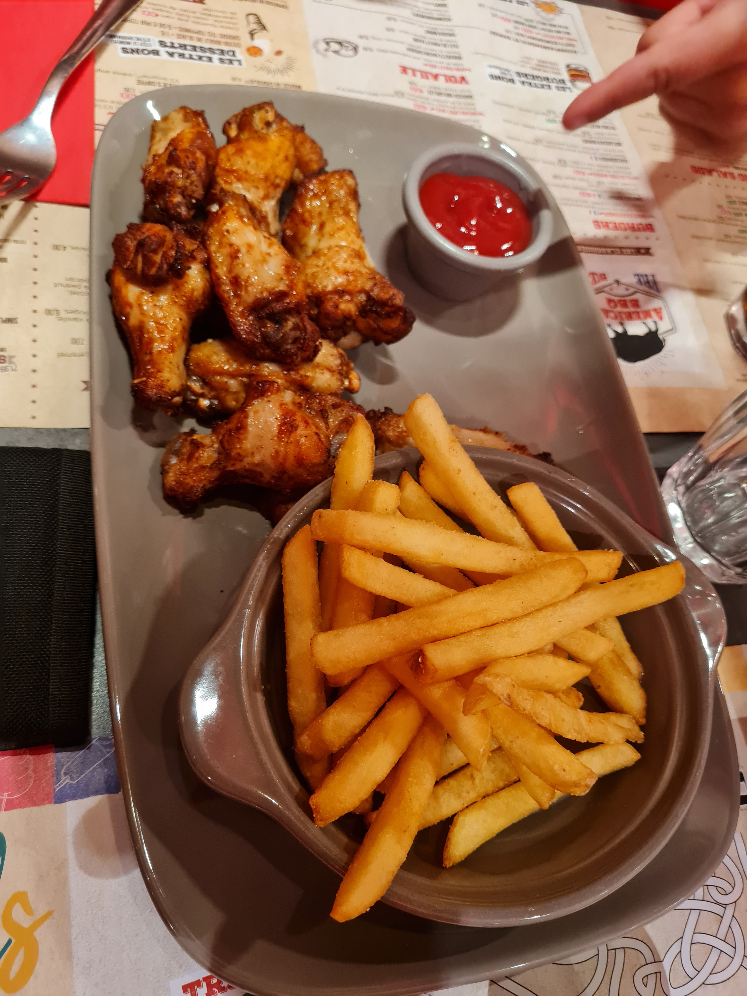 Nous étions de passage mais nous avions obtenu une belle place. L'accueil très chaleureux,la serveuse une extrême gentillesse. Au menu Chicken Wings, Sauce Ranch, accompagnement au choix. Vraiment délicieux 😋😋,au top 👍👌, Steak haché,sauce poivre, accompagnement au choix 😋😋,trop bon. Mes Ados ont kiffé la cuisine 👍😁👌.il y avait une très bonne ambiance sans stress 😁😊. Merci beaucoup pour le bon accueil. A bientôt Je rajoute niveau rapport qualité &prix rien n'a dire . Toilette très propre 👌👍. Franchement ça fait plaisir d'avoir été chez vous.😁😊