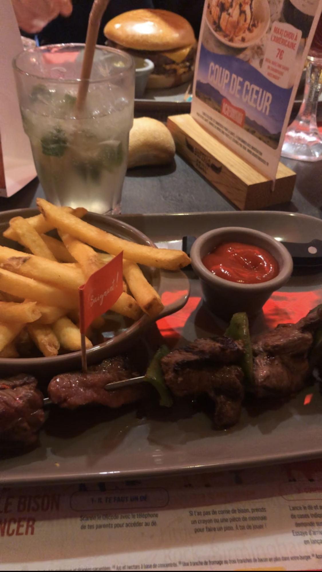 J’ai était au resto Buffalo grill pour fêter l’anniversaire de mon ami. Le personnel sont vraiment gentils très accueillant, la nourriture très bonne et l’ambiance sont vraiment génial et festif. J’ai vraiment aimer cette soirée. 😃