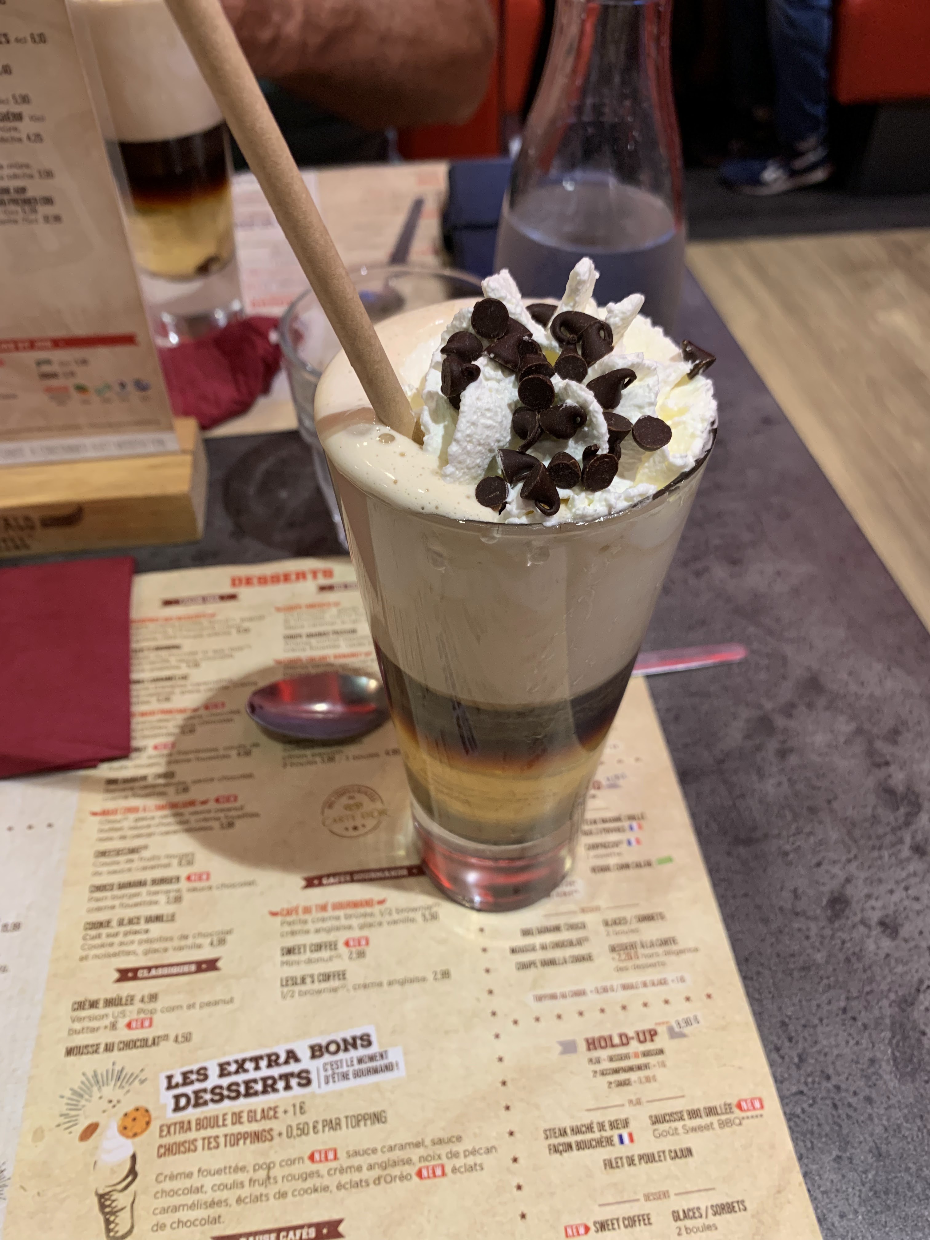 Un moment agreable et rapidement servi en semaine. Mention particulière à Émilie qui à soigné ma paire de boules, garnies de crème fouettée... ( vanille et café ! Je vous vois venir .... ).