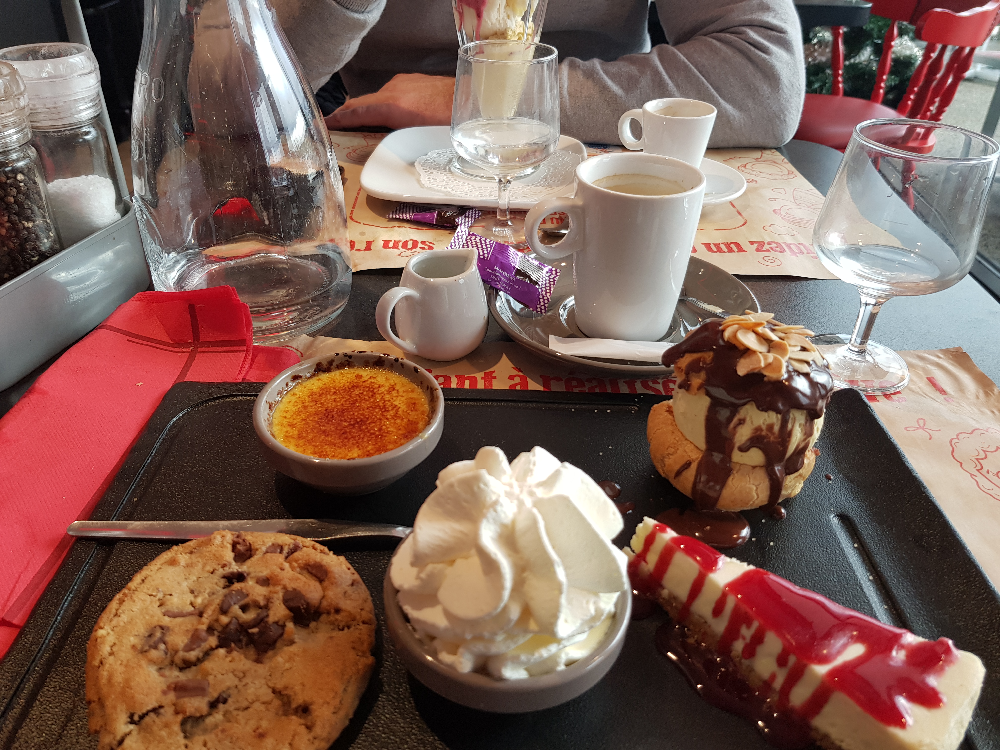Un choix limité en glaces et boissons (pas de chocolat chaud, pas de lait ni de glace poire Belle Hélène 😜) mais un accueil chaleureux et un service impeccable !!!! Un jeune serveur fort sympathique et très arrangeant qui a essayé de répondre à nos attentes. Nous reviendrons sans problème pour le service et pour le rapport qualité prix.