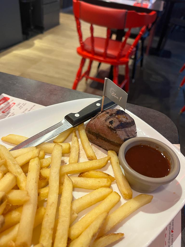 Super repas !rib’s toujours au top!!!seul bémol le pavé de bœuf avec des nerfs … Cela fait longtemps que nous ne sommes pas revenus! Mais en tout cas , cela redonne envie car on a été très bien reçu par Aliya ! Elle a été très souriante, accueillante, et très professionnelle! Attentionnée et à l’écoute, elle nous a proposée de mettre notre plat en réchauffe le temps que mon compagnon revienne avec ma fille! Cela fut agréable de se faire servir avec tant de sincérité dans le service. Merci à elle et Buffalo Grill : gardez la bien dans votre équipe!! ☺️