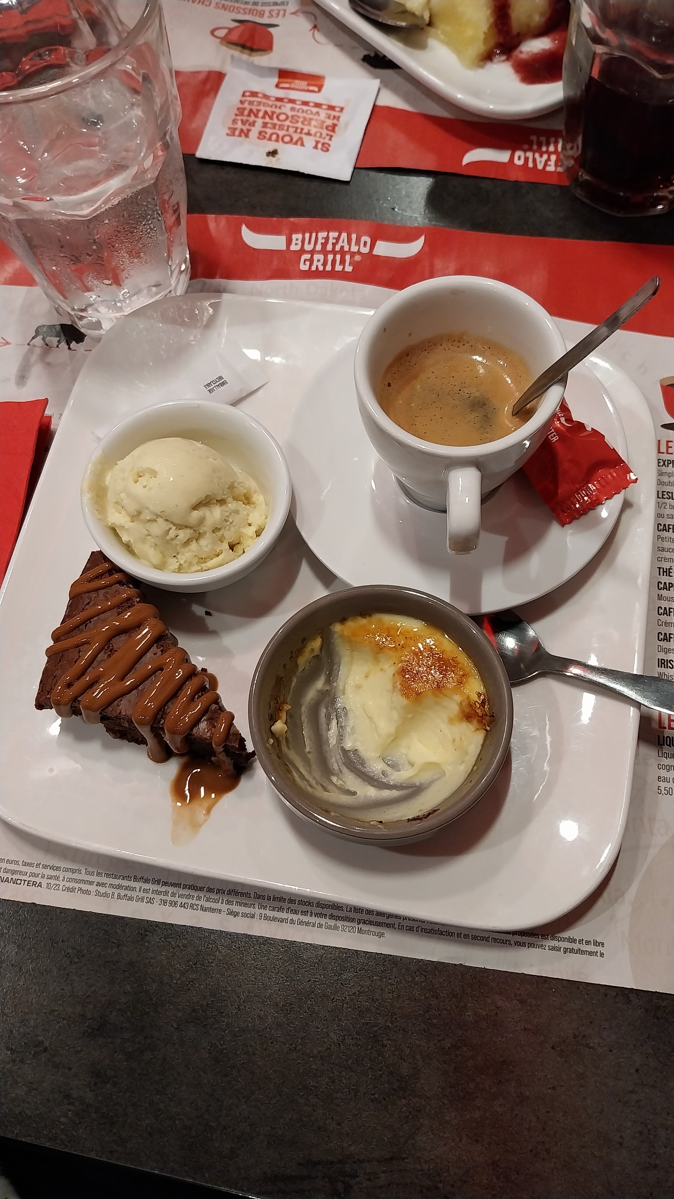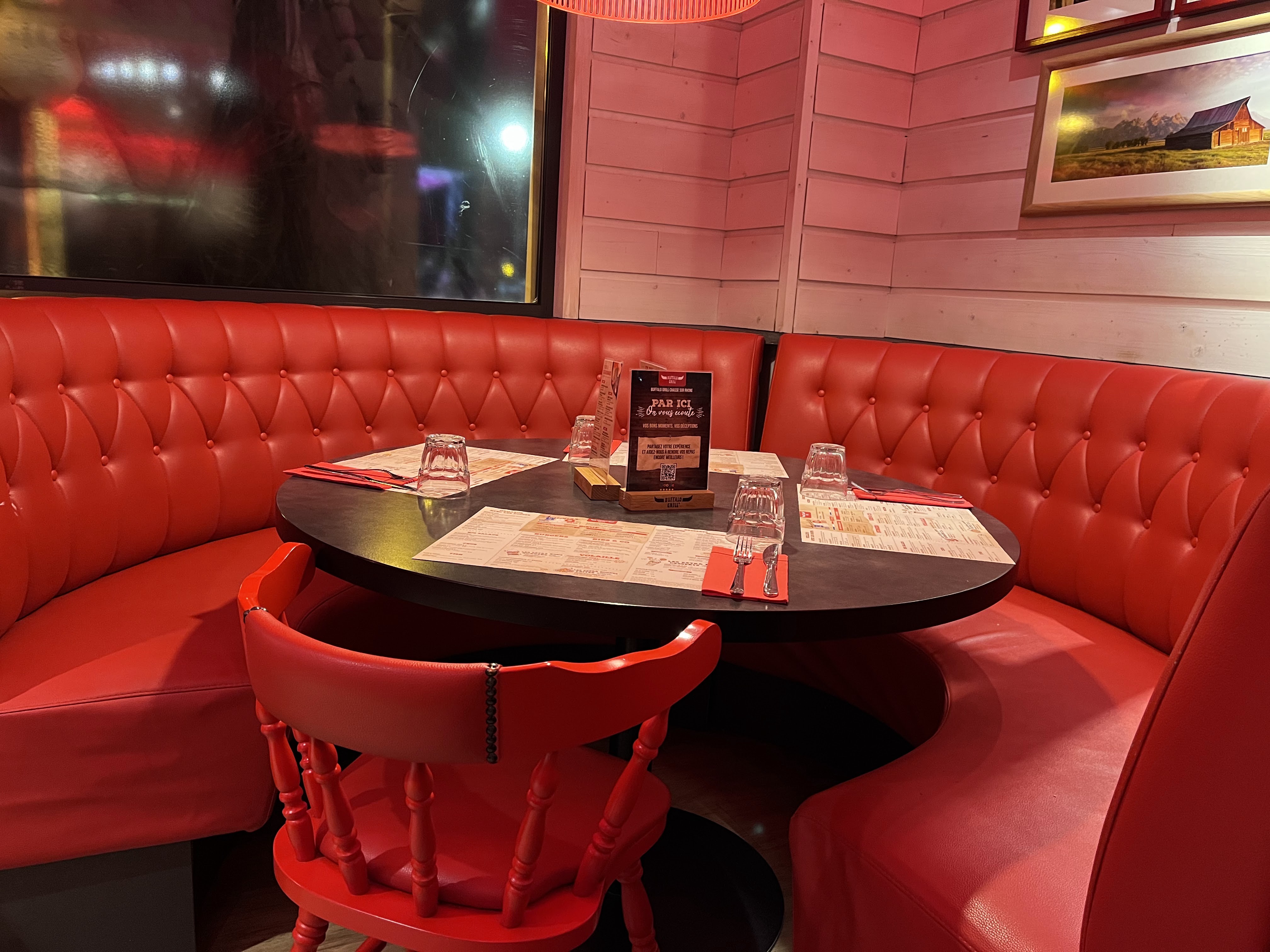 Nous avons dîné au restaurant Buffalo Grill et bien que la nourriture était satisfaisante, nous avons rencontré quelques problèmes. Les instructions pour commander via l'application étaient peu claires, et nous avons dû demander pour avoir de l'eau à table et nous n'avons reçu du pain qu'une seule fois... Cependant, le personnel était aimable et la qualité des plats était bonne.
