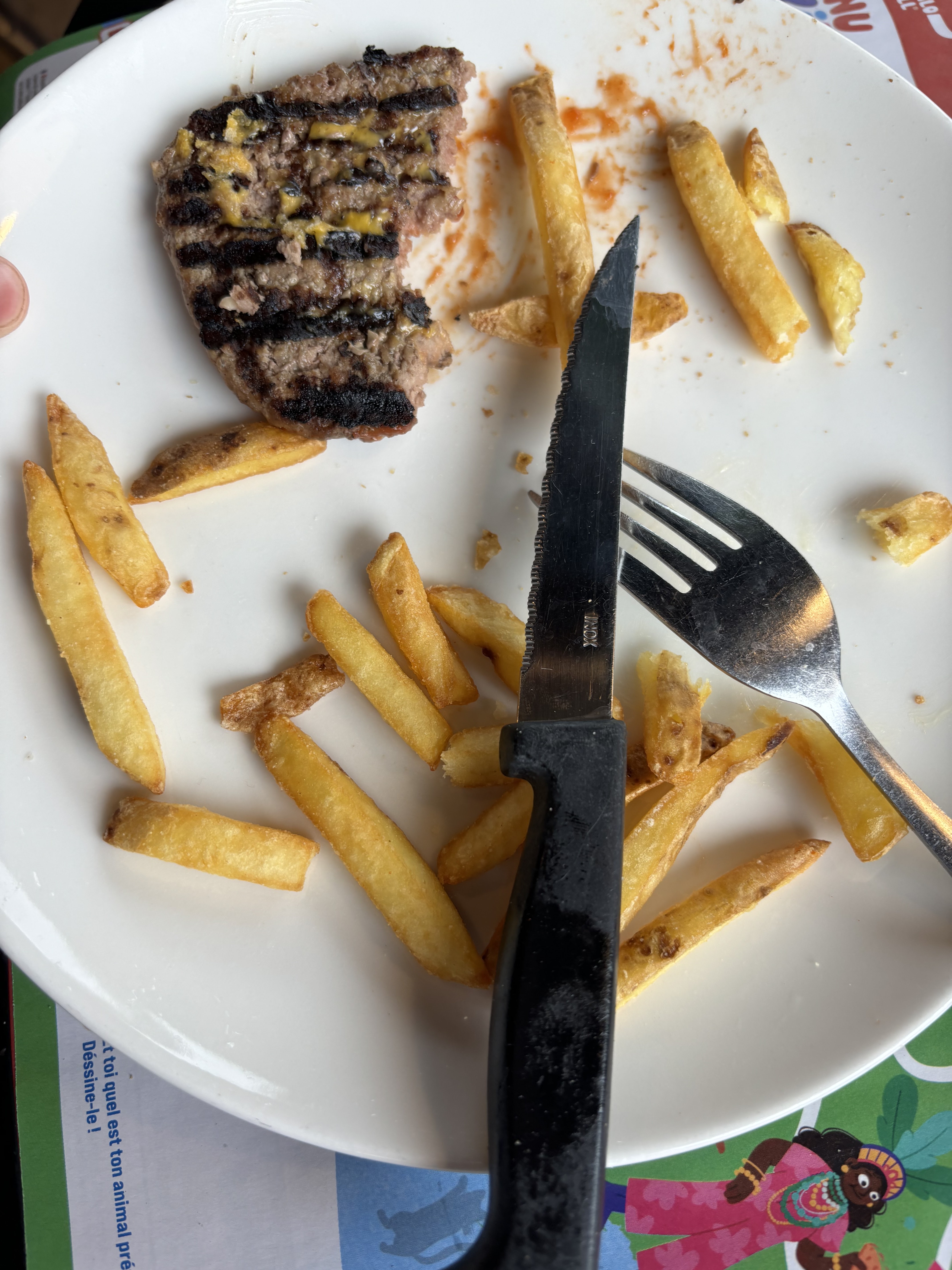 Points positifs : Service rapide, de bonnes quantités. Points négatifs : Traces sur les couverts, pour le menu enfant on a dû demander la surprise