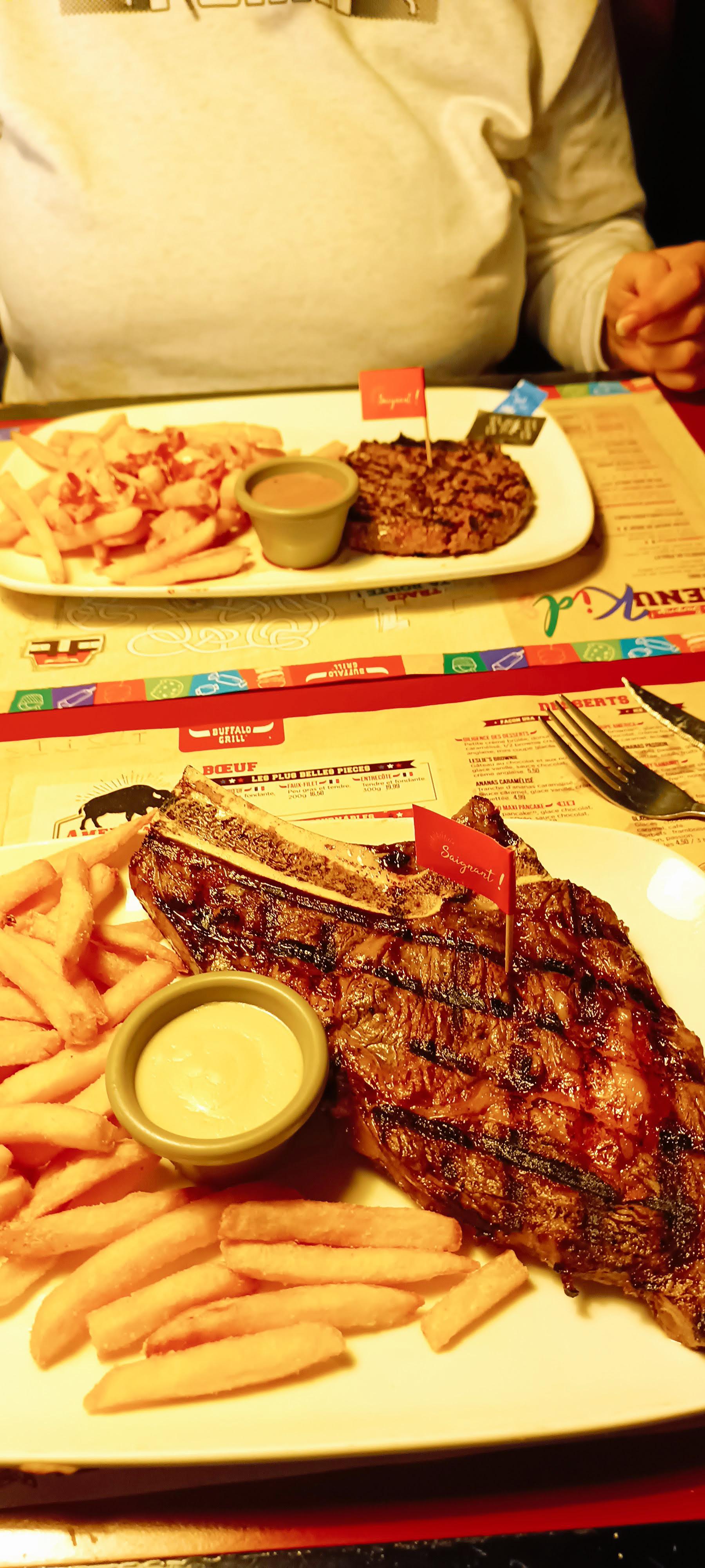 Accueil chaleureux. Viandes très bonnes. Des oublies dans la commande, arrivée ensuite à notre demande. Les desserts ne sont pas extraordinaires mais on est dans un resto de viandes. Même à quand le retour du bison à votre carte comme à l'époque ? Buffalo Grill pour Buffalo Bill chasseur de bison quand même !