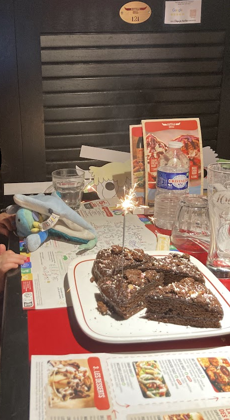 On a trop bien mangé comme d'habitude en plus c'est l'anniversaire a ma fille petit gâteau avec bougie très sympa merci.