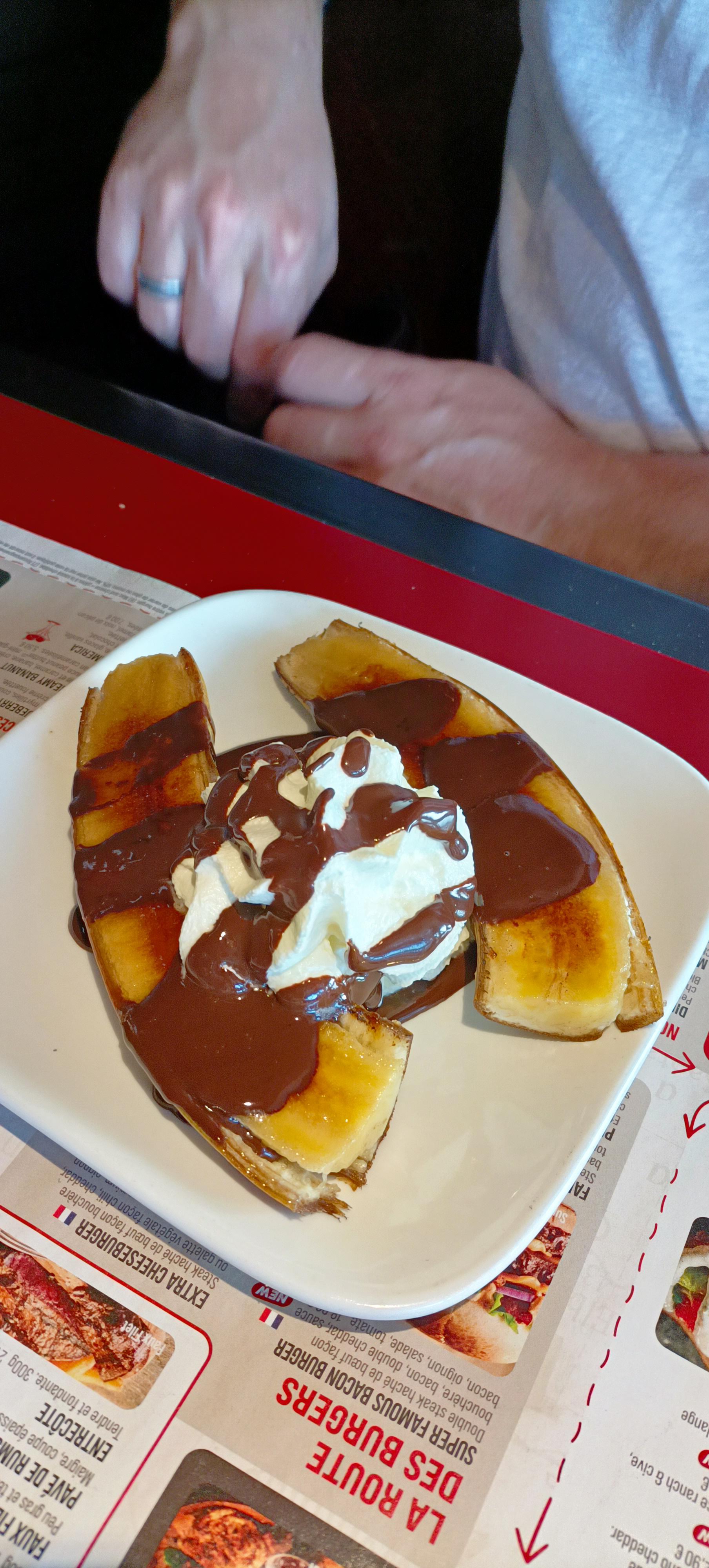 Un peu déçu ….. Le point positif c’est que nous avons été correctement accueilli et la serveuse au top 👌 Par contre en ce qui concerne la propreté c’est pas top et le repas laisse vraiment à désirer 🙁 La salade d’entrée sans pain c’est pas top ! Nous avons commandé 1 steack saignant et un autre bien cuit les deux étaient à point Ensuite nous avons commandé en accompagnement des haricots vert et des frites nous avons eu des frites pour les deux Et pour finir une coupe america sans noix de pécan avec une chantilly chaude ……. (Photo) Vraiment déçu pour un Buffalo 😔