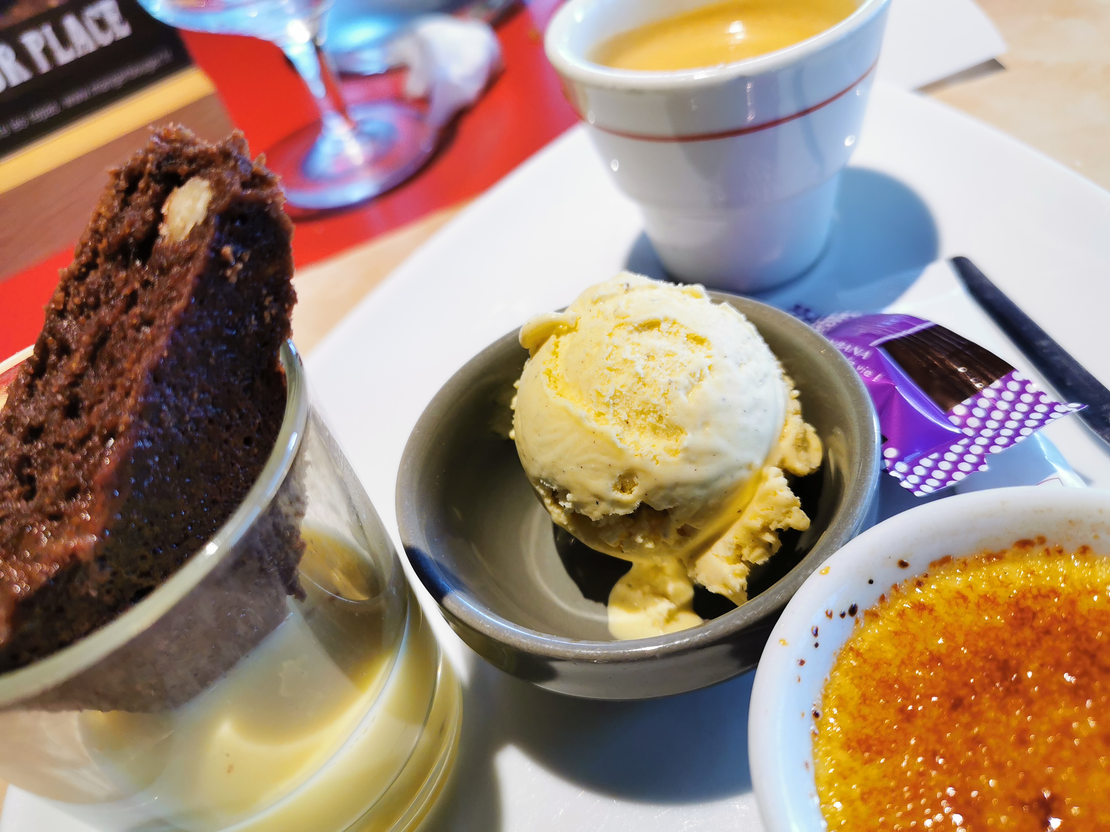 Les plats et desserts ont été parfait mais nous avons du nous déplacer 2 fois pour avoir de l'eau et le dessert. Les employés étaient dans l'autre salle pour discuter tandis que cela faisait 20min que nous attendions notre dessert. Quand notre dessert est arrivé nous n'étions pas encore débarrassé
