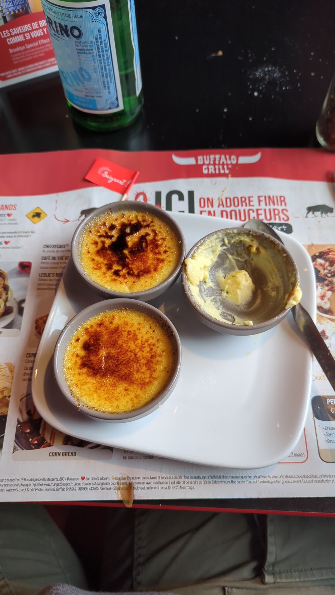 Comment dire... cela faisait longtemps que je n'avais pas passé une soirée aussi désastreuse chez Buffalo Grill. Personnel dépassé par les 10 tables occupées, viande d'origine inconnue et morceau indéterminé (non ce n'était pas un faux-filet), cuisson à la va-comme-je-te-pousse et le top la pomme de terre au four version boule de charbon. La bière, le pain et la salade d'accueil voilà tout ce qui était sauvable. Bref je ne pense pas que nous y retournerons.