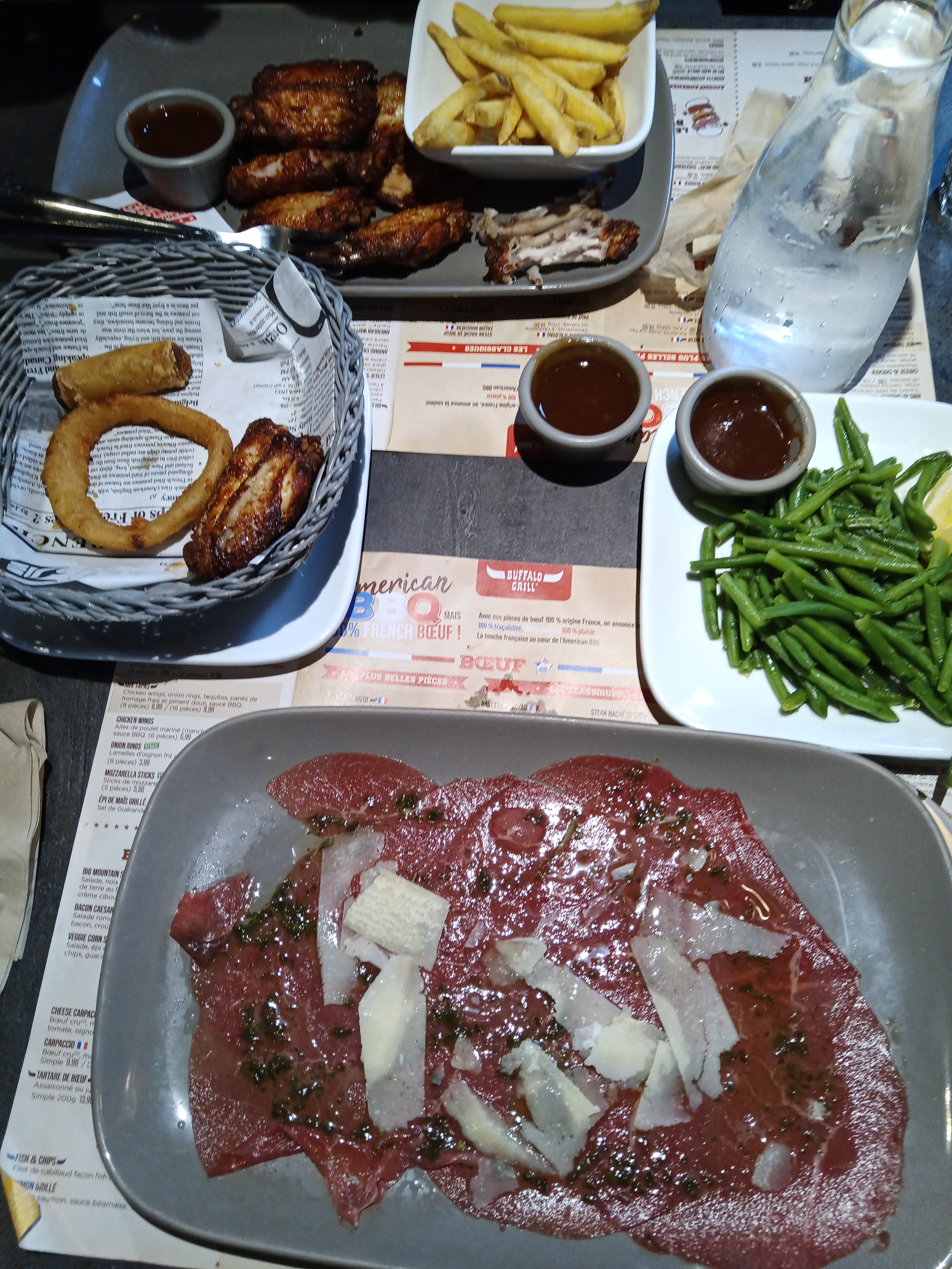 Buffalo..... pas de soucis, on sait où l'on vas..... de la déco, à l'ambiance pas de surprise ! Le personnel est toujours nikel ! Niveau nourriture les prix sont raisonnables ! Alors pourquoi noter 3 ! Et bien j'ai pris le nouveau burger ribs becon avec le supplément à 3 euros pour le doubler ! Pas fameux, ribs reconstitué en forme de steak qui ont un goût un peu fade et trop compact...... du coup pour un burger à 18 euros je trouve très cher par rapport à la qualité ! Le reste RAS !