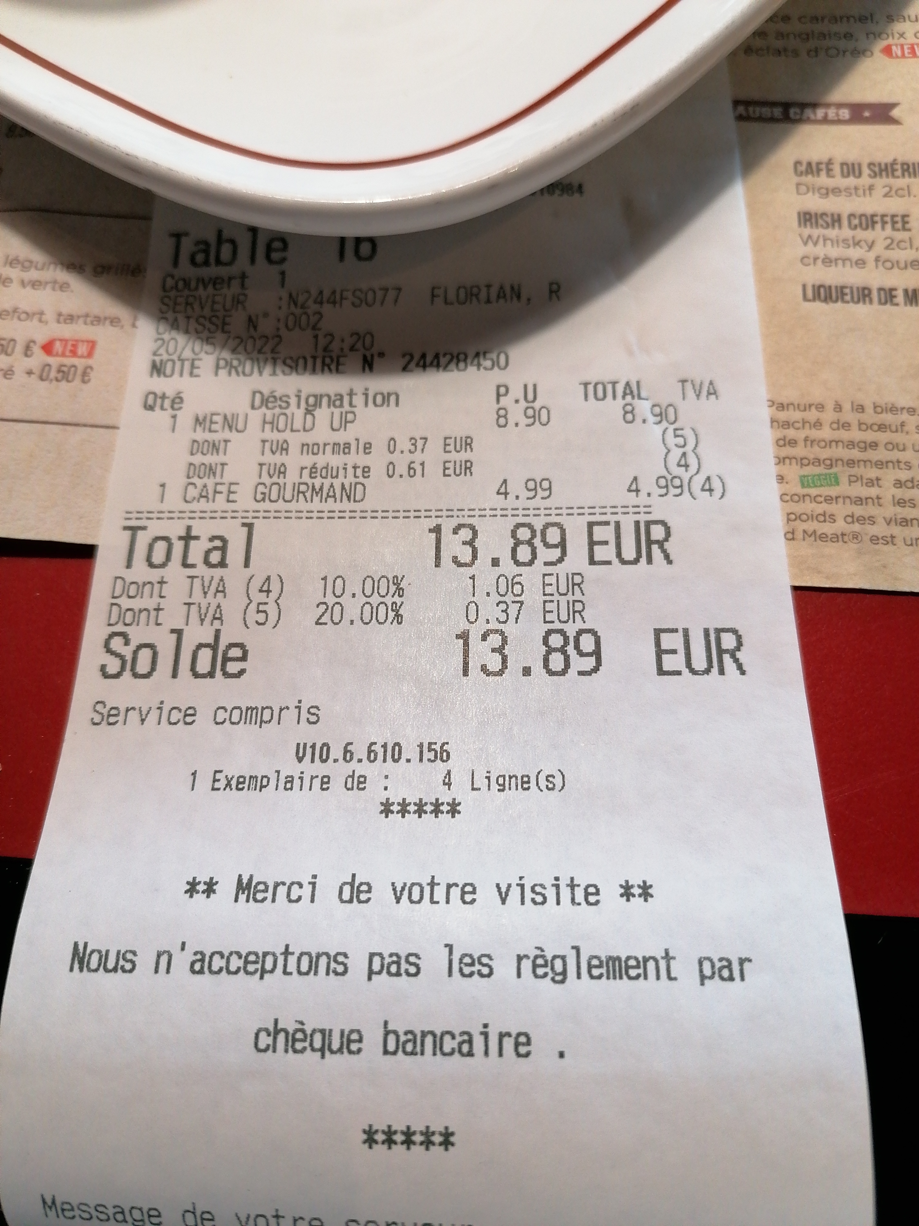 Tout c'est bien passé et la serveuse était sympa 😉