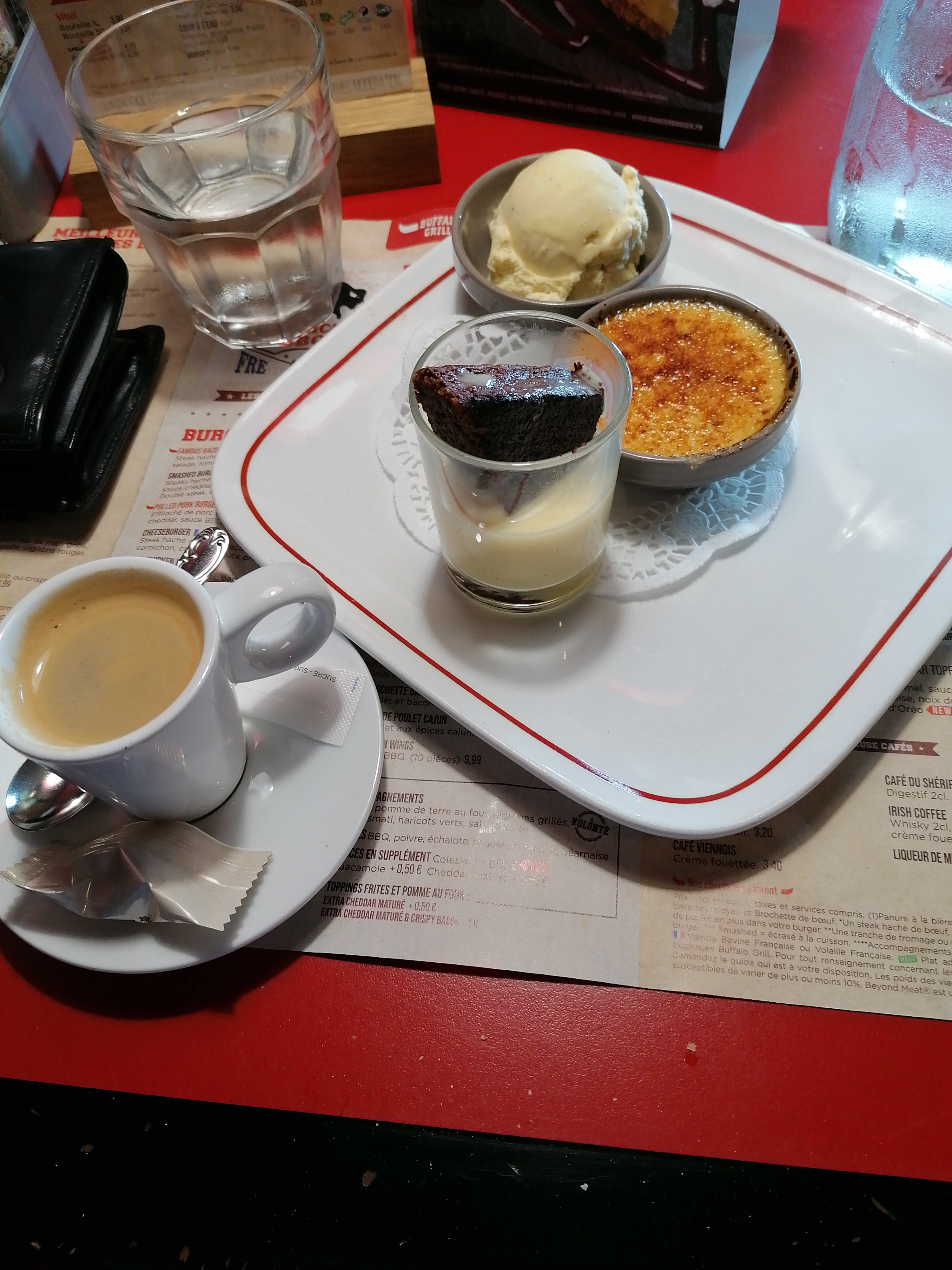 Aujourd'hui petit Buffalo à deux. Une charmante Mélinda s'occupe de nous et nous lui disons (bêtement) que mardi c'était mon anniversaire. Nous mangeons, comme d'habitude super bon ! Et au moment du dessert qu'elle ne fut pas ma surprise de voir arriver une présentation avec une bougie !!!!! Offerte (le dessert) !!! Avec le grand sourire de Mélinda !!! Merciiiii beaucoup Buffalo et Mélinda, voilà une attention qui me va droit au cœur !!! J'ai été très surprise et très contente (et Mélinda très gentiment m'a donné mon âge... avec presque une vingtaine en moins 😂)super sympathique !!!