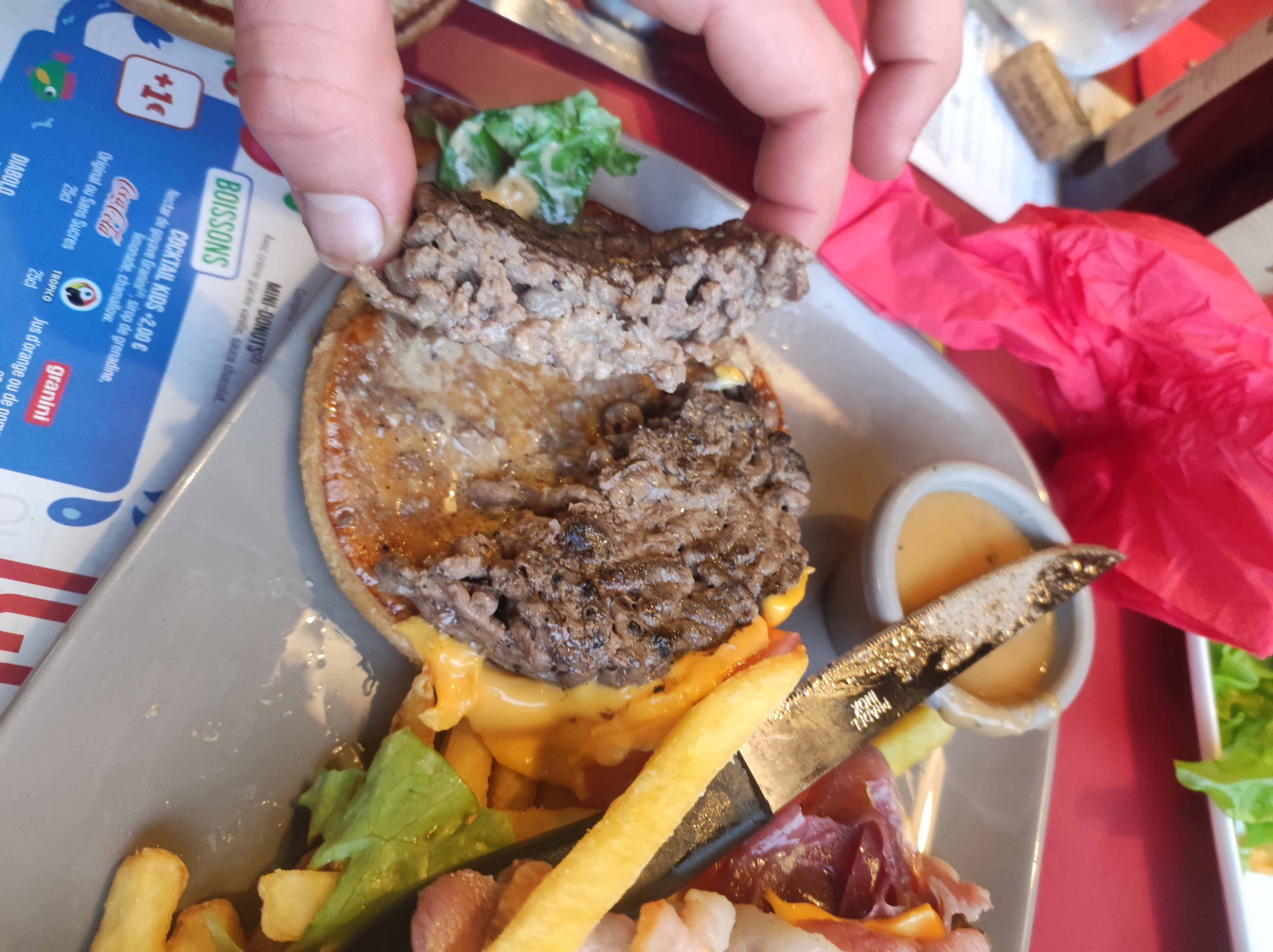 Il manquait plein d’ingrédients et rien n’a été proposé pour compenser. Résultat le famous burger a été transformé en cheese pour le même prix !