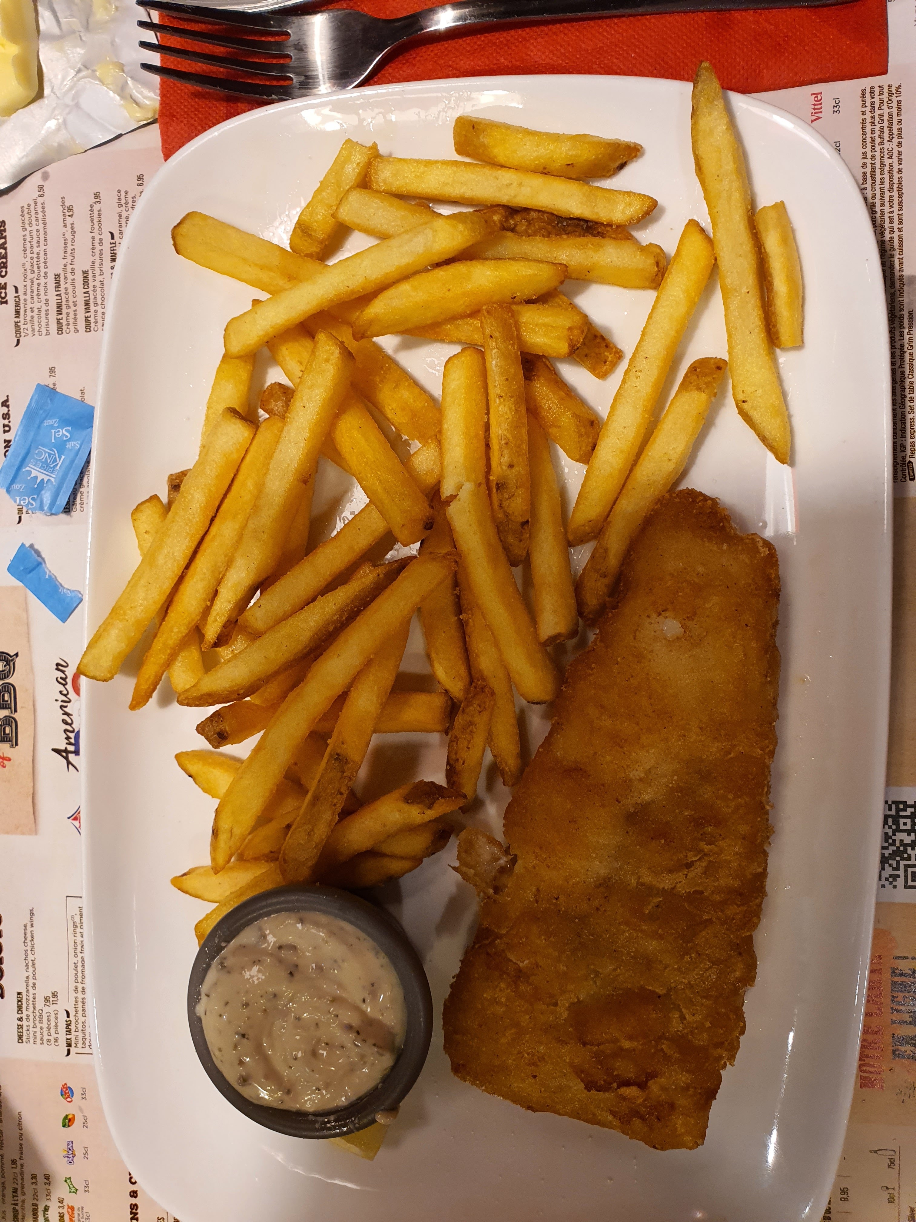 Ma fiancée et moi avons mangé ici le 31 juillet 2020. Ma fiancée avait du fish & chips, ce n'était rien de spécial, cela ressemblait à un gros doigt de poisson plutôt qu'à un vrai filet. Il faisait chaud et la pâte était bonne cependant. J'avais des côtes levées très savoureuses et pleines de viande. Le service était très rapide, tout comme la nourriture, remarquablement rapide en fait. Cependant, lorsque la nourriture est arrivée, aucune sauce ne nous a été proposée. Les desserts que nous avons mangés étaient très bons. Par contre, l'établissement était incroyablement sale. Compte tenu de la pandémie et de la nécessité de se concentrer davantage sur la propreté, ce restaurant fait cruellement défaut.