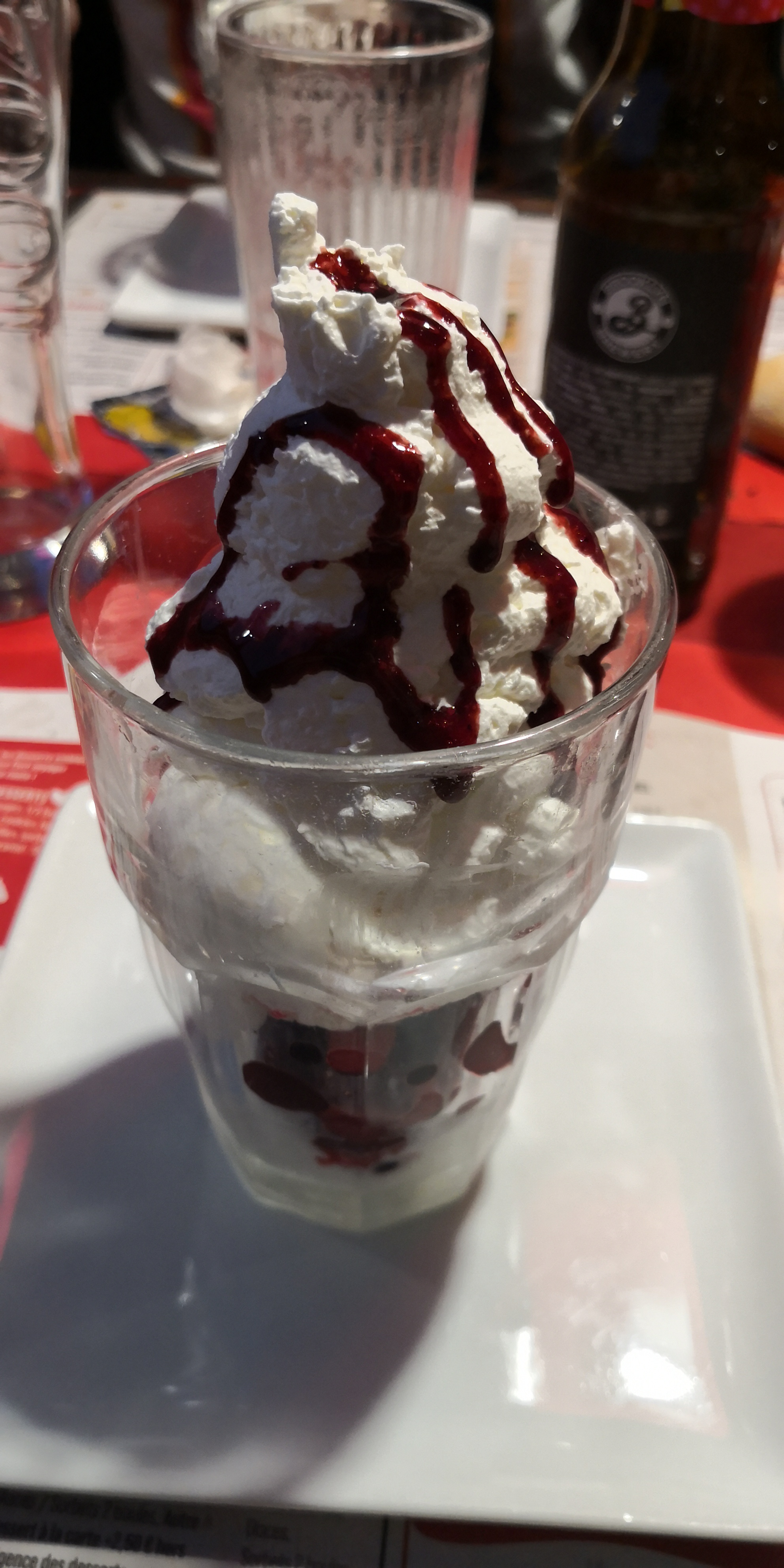 Encore une fois un vendredi soir bondé, le staff épuisé du coup ça se ressent dans l'assiette mais le prix ne changent pas. Bien trop Cher pour ce qu'on reçoit. Un famous bacon burger sans bacon du coup, il a du s'évader de mon assiette et fade, quelques frites à côté... Une coupe américana ou le caramel était bien caché aussi... Mais on applaudit la Serveuse qui était au petit soin alors que clairement épuisée ! Après 10 ans, c'était la dernière fois pour nous ! Il y 1 bien mieux en matière de viande aujourd'hui. Et alors l'eau de table est infecte à boire 😱