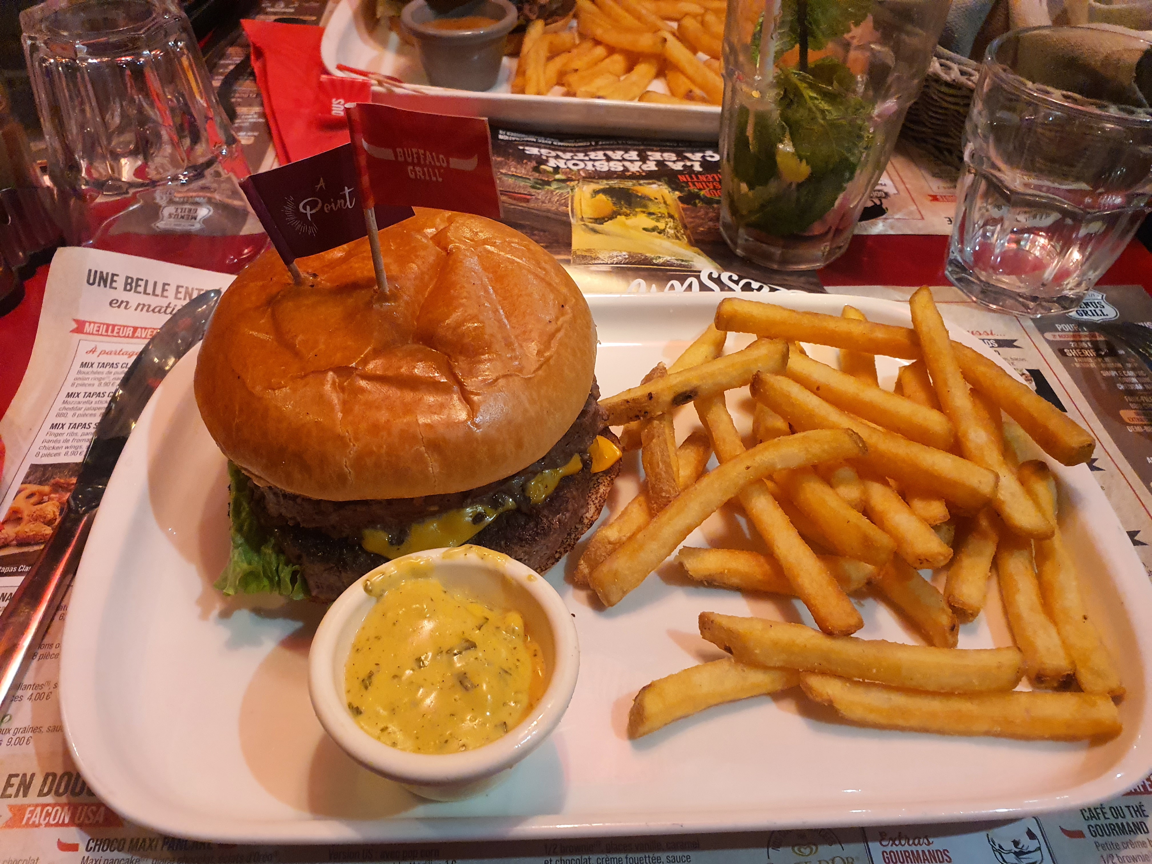 ce midi retour depuis longtemps chez buffalo...pavé de bison-frites-sauce roquefort...pavé cuit à point pile comme j'aime...le dommage c'est la sauce excellente dans un dé à coudre ... service top,bien accuellis,bien servis,féliciter les serveuses.