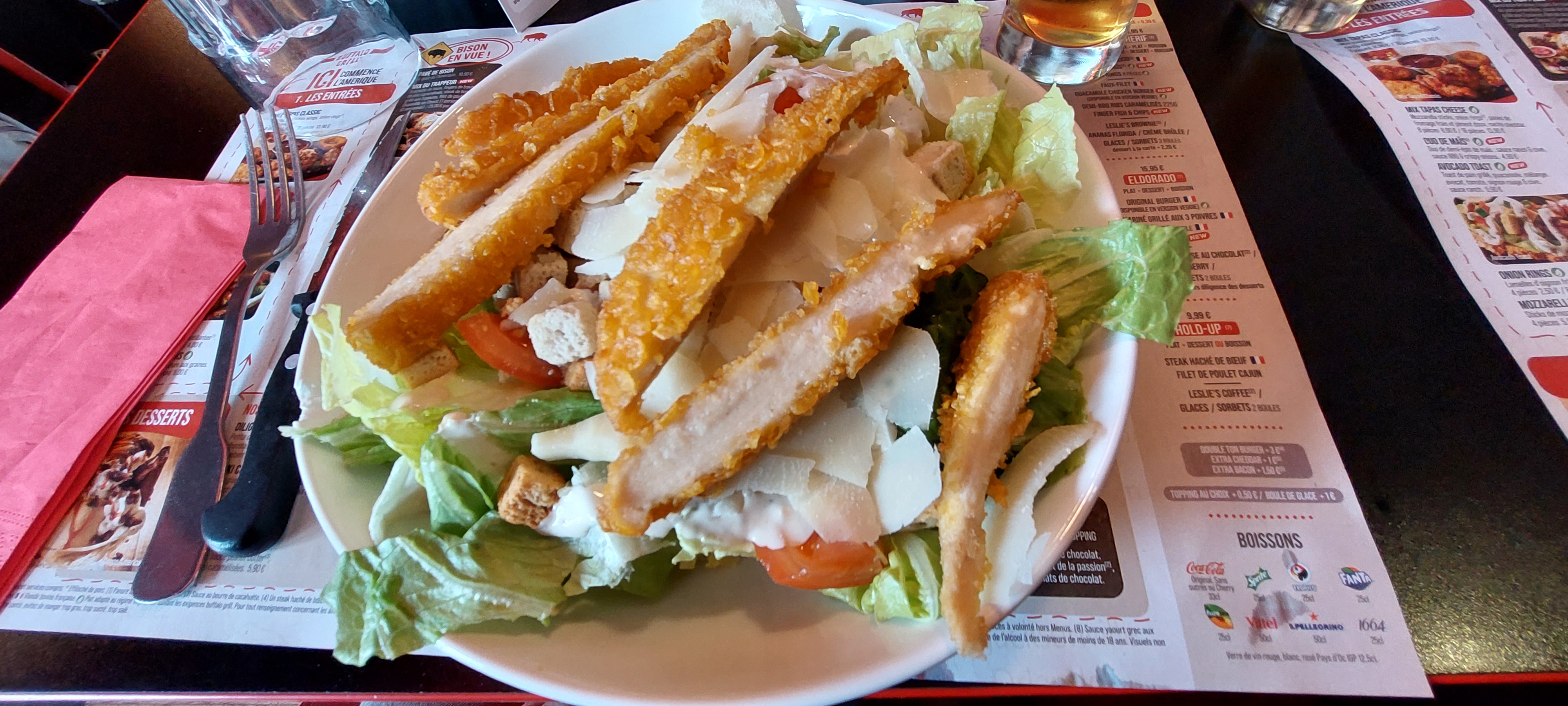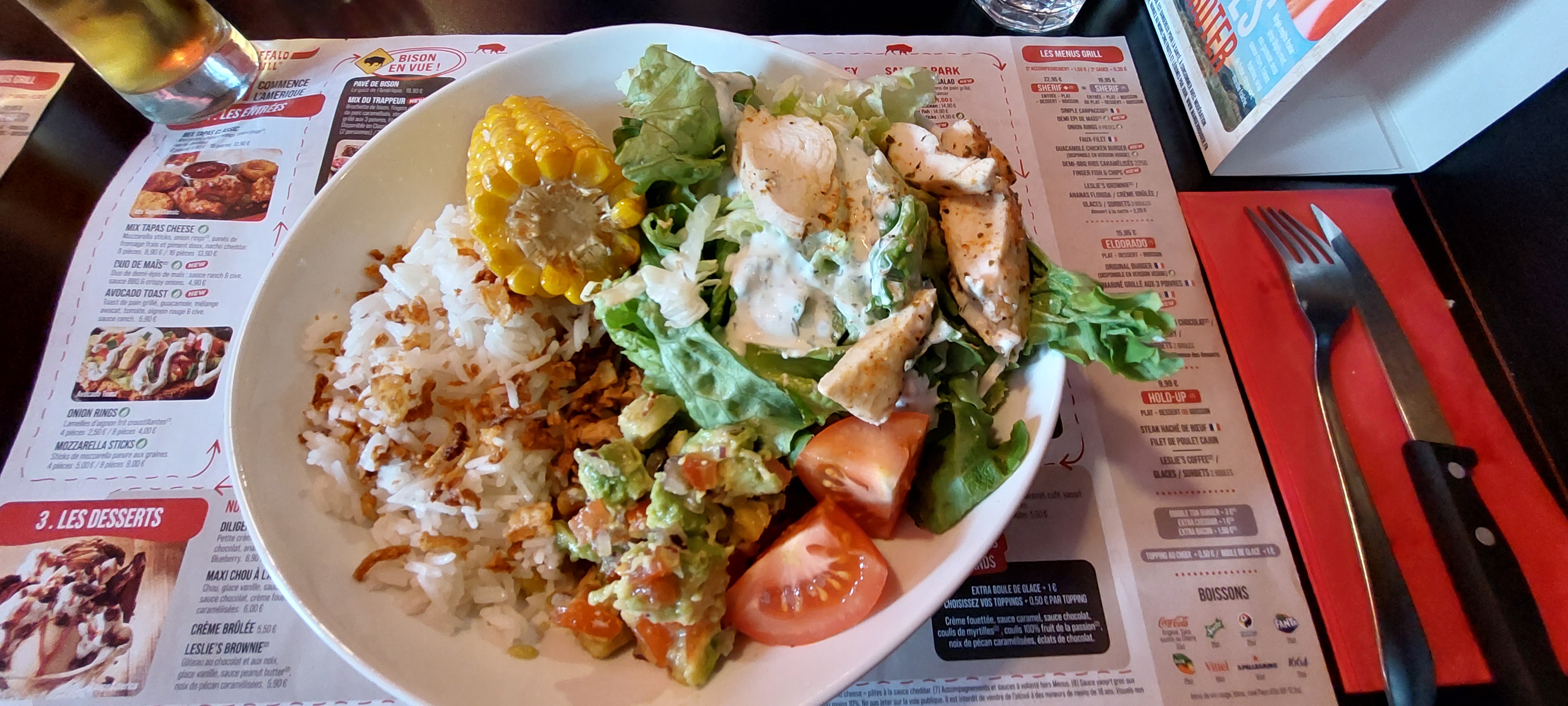 Repas correct mais sans grande prétention. Un salade superbowl à 15 eur avec 4 lamelles d'escaloppe de poulet...ca fait cher.