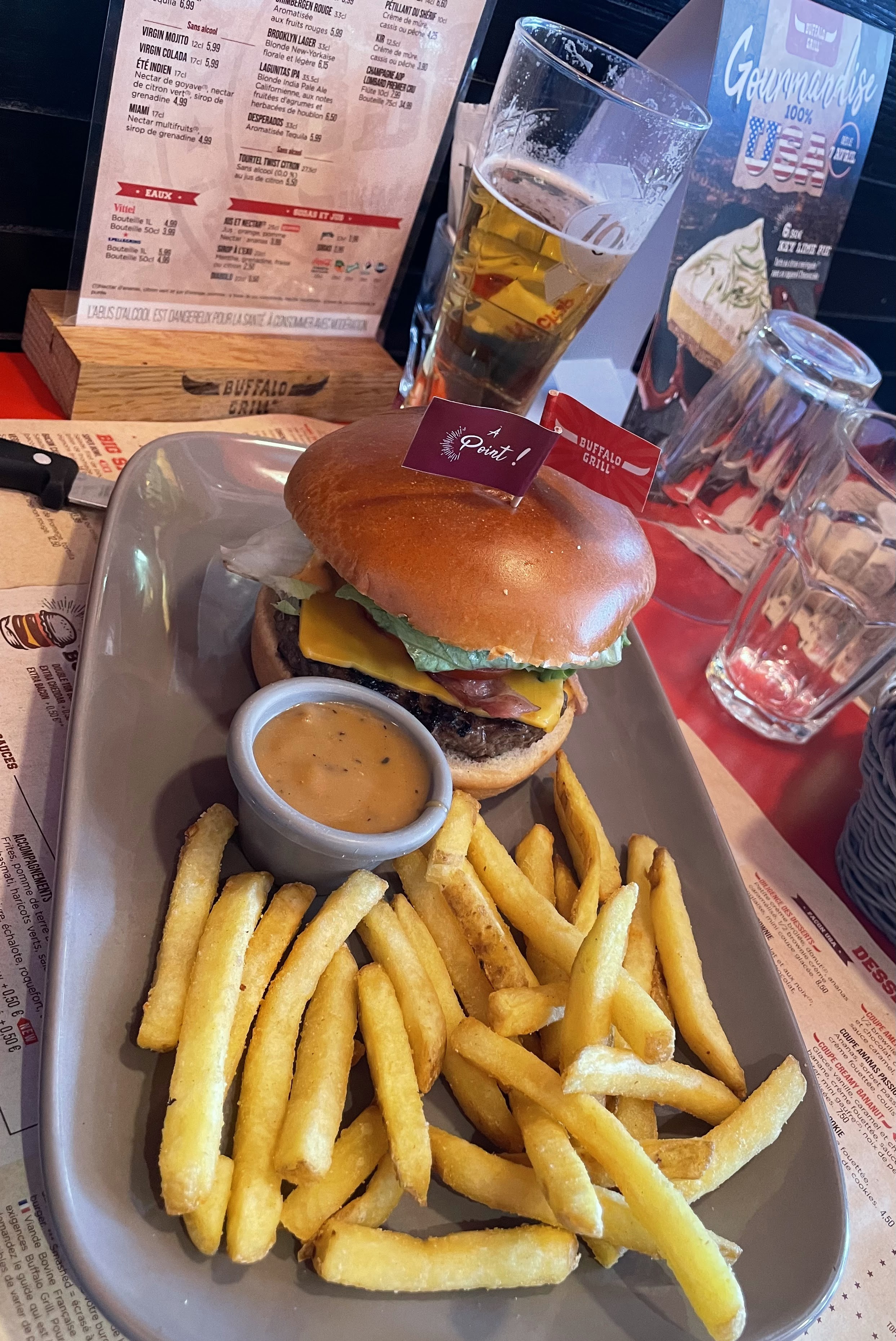 Le buffalo est un grand classique mais malgré le fait que ce soit une chaîne ce restaurant est très bon. Les serveurs (bien que cela tour beaucoup) sont très aimables et à l'écoute. La décoration est top ambiance far west, la nourriture est bonne, bon rapport qualité/prix.