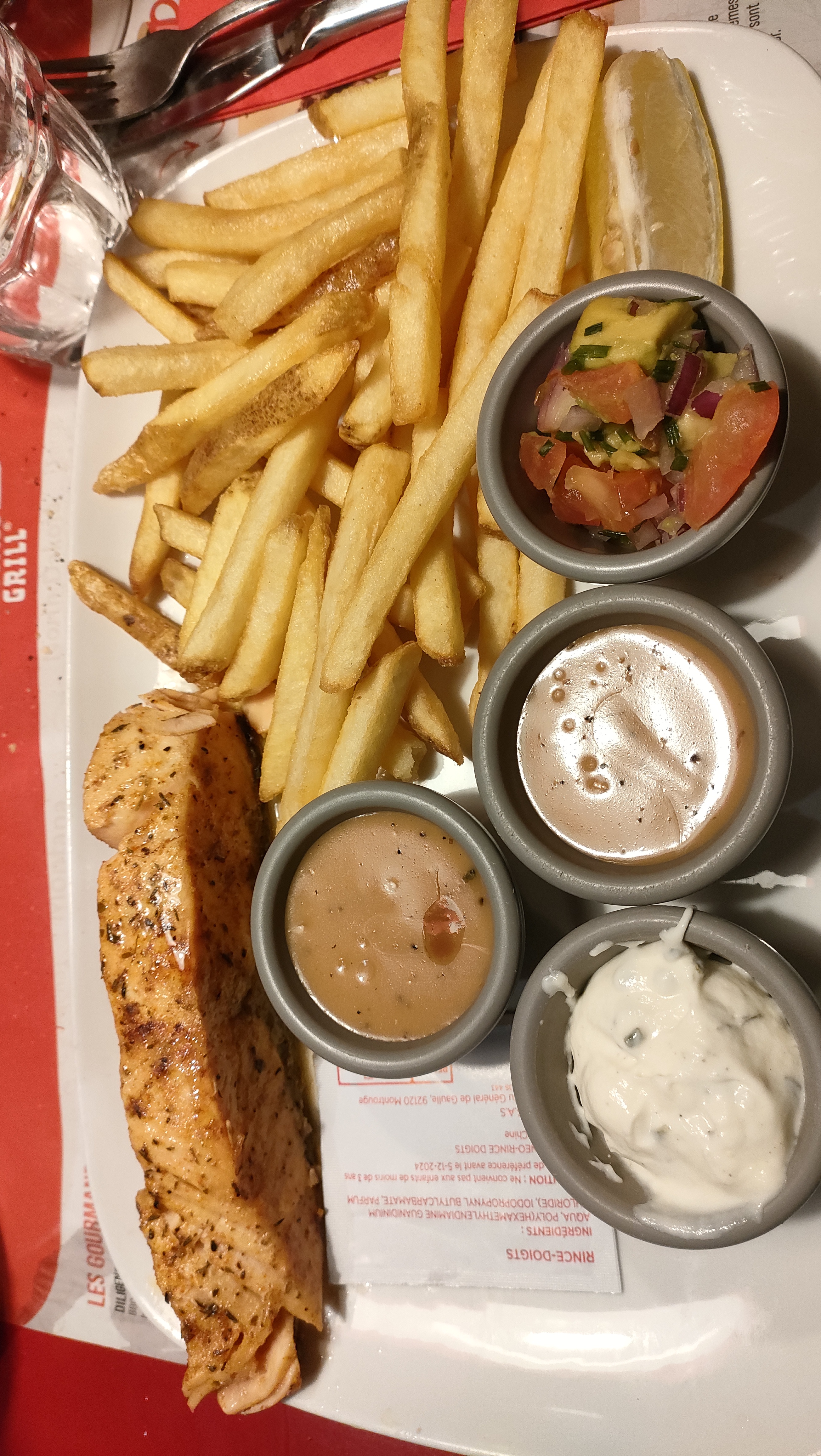 Nous nous sommes régalés les frites un chouilla trop cuites mais nous avons été reçus comme des rois en ce jour d’Halloween par la charmante Denise. Efficacité et douceur la caractérise merci à elle pour ce moment agréable et son sourire