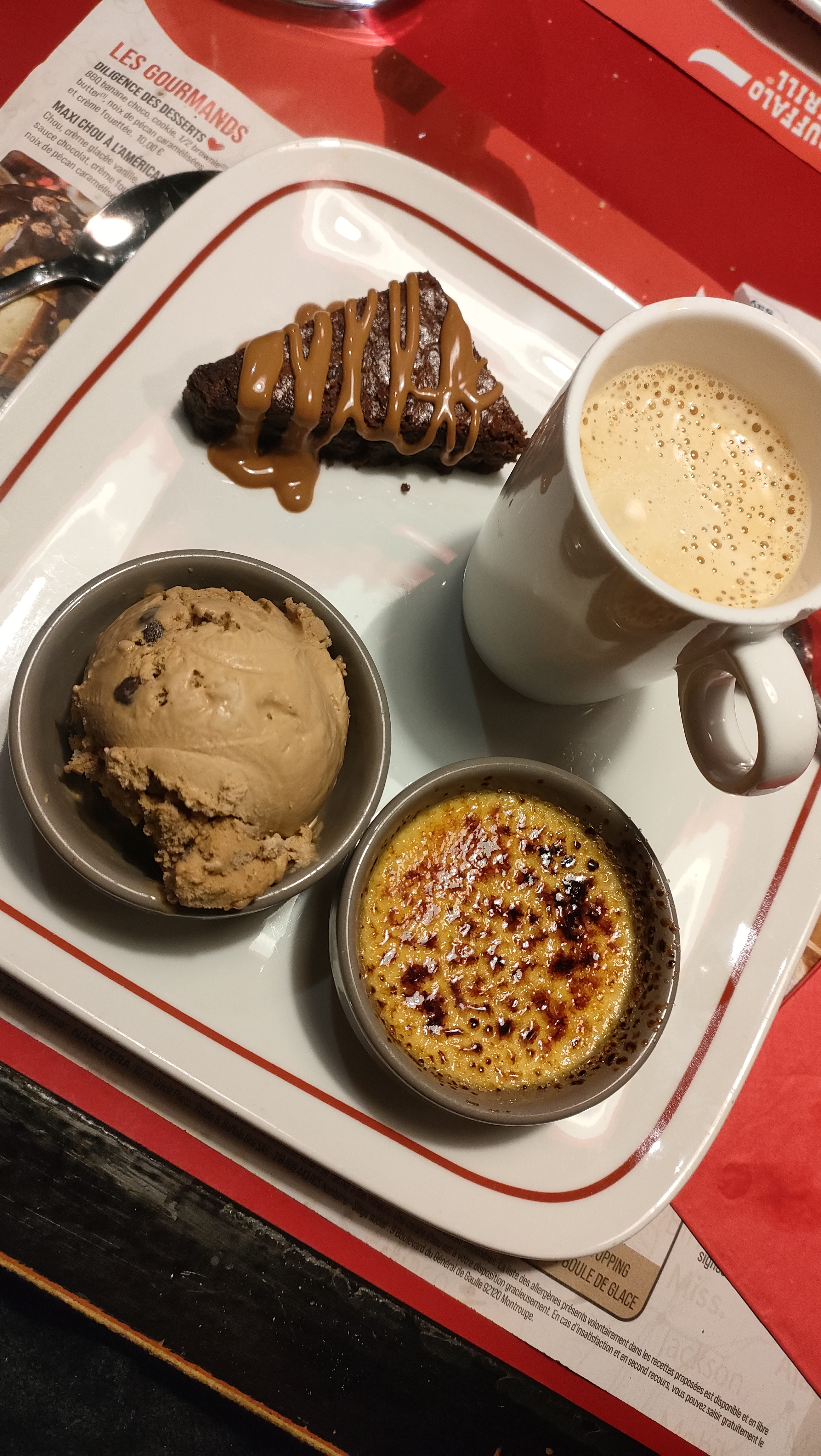1ère fois que je vais dans un Buffalo et qu'il n'y a ni entrecôte, ni ribs, ni faux-filet. Du coup choix limité, service bien mais quelques manquements. Par contre la crème brûlée était très bonne ainsi que le brownie.