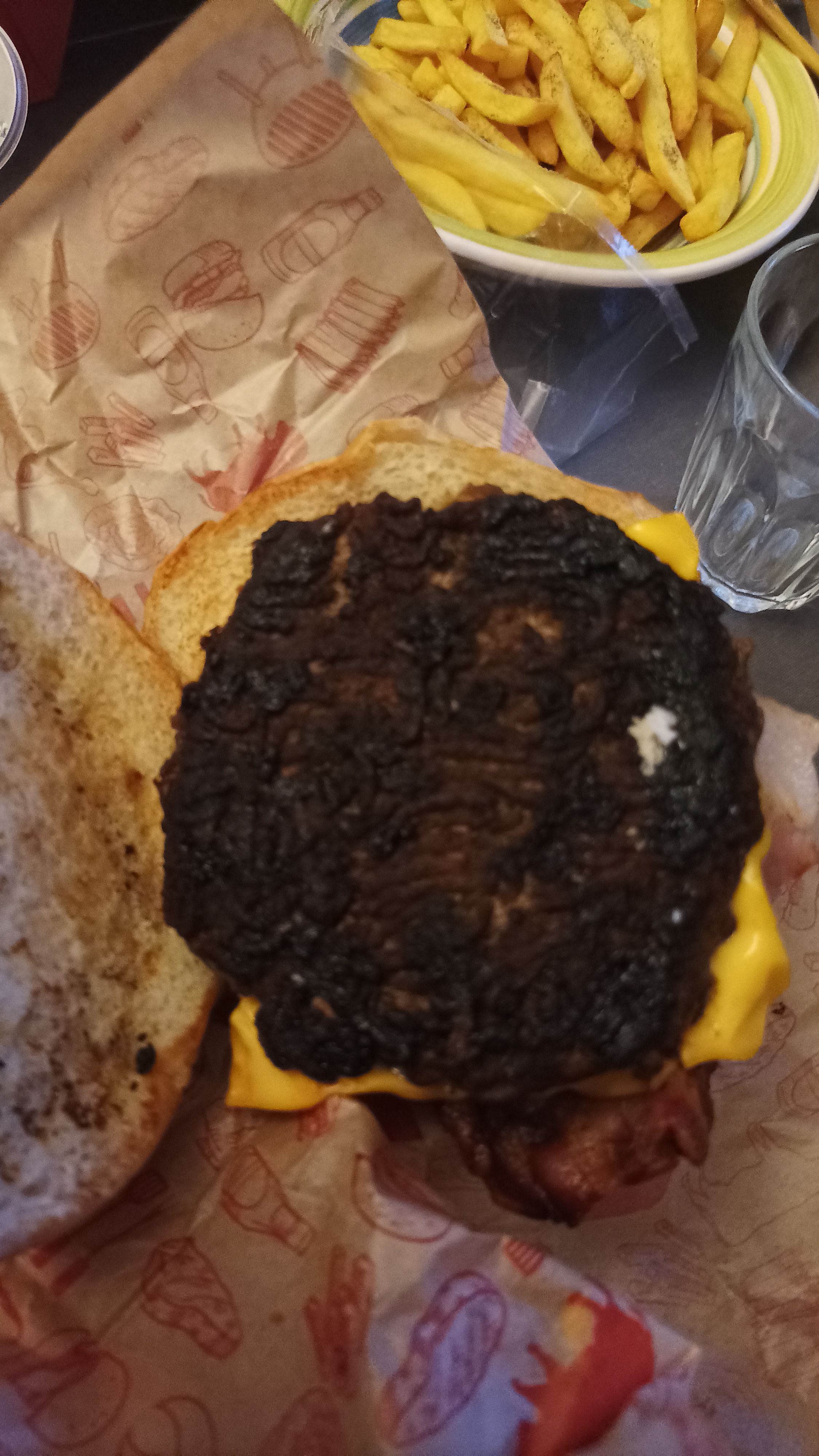 Absolument LA-MEN-TABLE. Produits manquants et nourriture complètement cramée. Comment peut-on oser servir cela ? Commande Uber Eats en retrait pick up le 01/08. Commençons par les manquants : J'ai commandé 2x frites cheddar maturé et bacon. Surprise, il y a bien du bacon trop cuit, mais pas de sauce cheddar, sur les 2 plats. Ensuite la cuisson, abominable. Deux Famous Bacon burgers : deux steaks complètement noirs, inmangeable. Sans parler de la noutrriture laissant vraiment à désirer. Une assiette de Finger ribs BBQ party, quasiment le m^me scénario, le maïs est cramé, la viande quasiment pareil. Excédé je décide de retourner au restaurant pour me plaindre. Une demie heure de marche pour l'aller retour à 22h, c'est dire si j'étais agacé. Là le manager s'excuse, nous explique qu'il y avait trop d'activité ce soir... Il m'indique qu'ils vont rembourser la commande complète, que je dois juste envoyer un message au service client Uber Eats. Le service client a refusé de rembourser, excepté les frites. On nous répond qu'il fallait vérifier la commande en la récupérant. Ce que nous avons fait, mais effectivement nous ne nous sommes pas amusé à inspecter tous les pplats, ouvrir les burgers pour vérifier que ce ne soit pas cramé... évidemment !!! A ce jour ma pire expérience dans un restaurant.