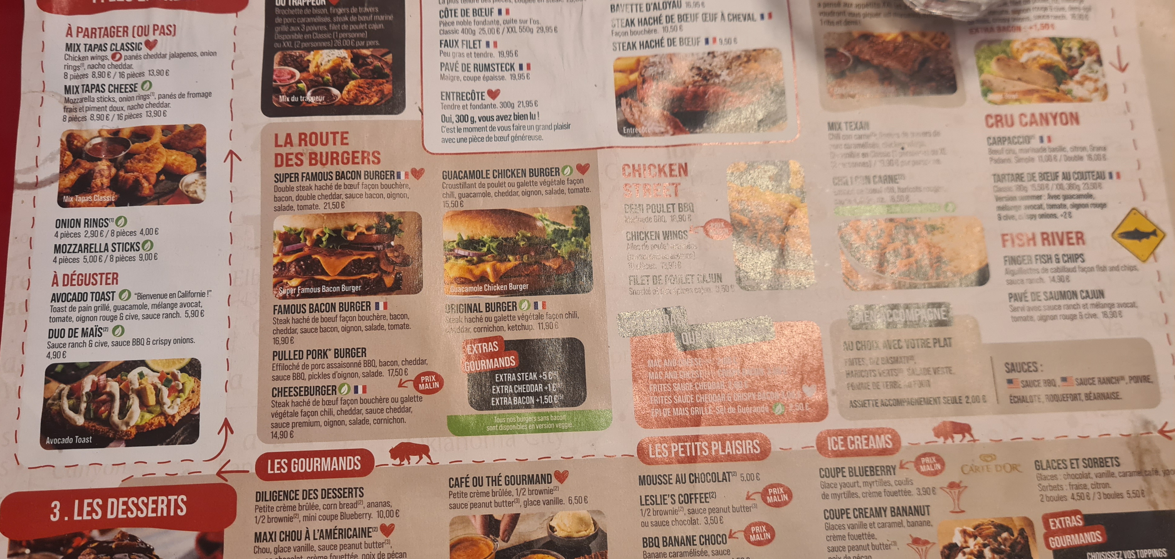 Déçue, la carte a changé : décevante et chère. À notre venue, nous commandons un menu comme à notre habitude mais le serveur nous dit qu'ils n'en font pas le soir... Détail indiqué nul part sinon nous ne nous serions pas arrêtés un soir pour manger ici. Plus de maïs et le burger au poulet barbecue n'a plus aucun goût, je ne le conseille plus. 3 étoiles pour le serveur qui a été professionel, les frites toujours aussi bonnes et en illimité ainsi que le dessert délicieux (mais chère!!). Pour le reste, nous ne reviendrons pas.
