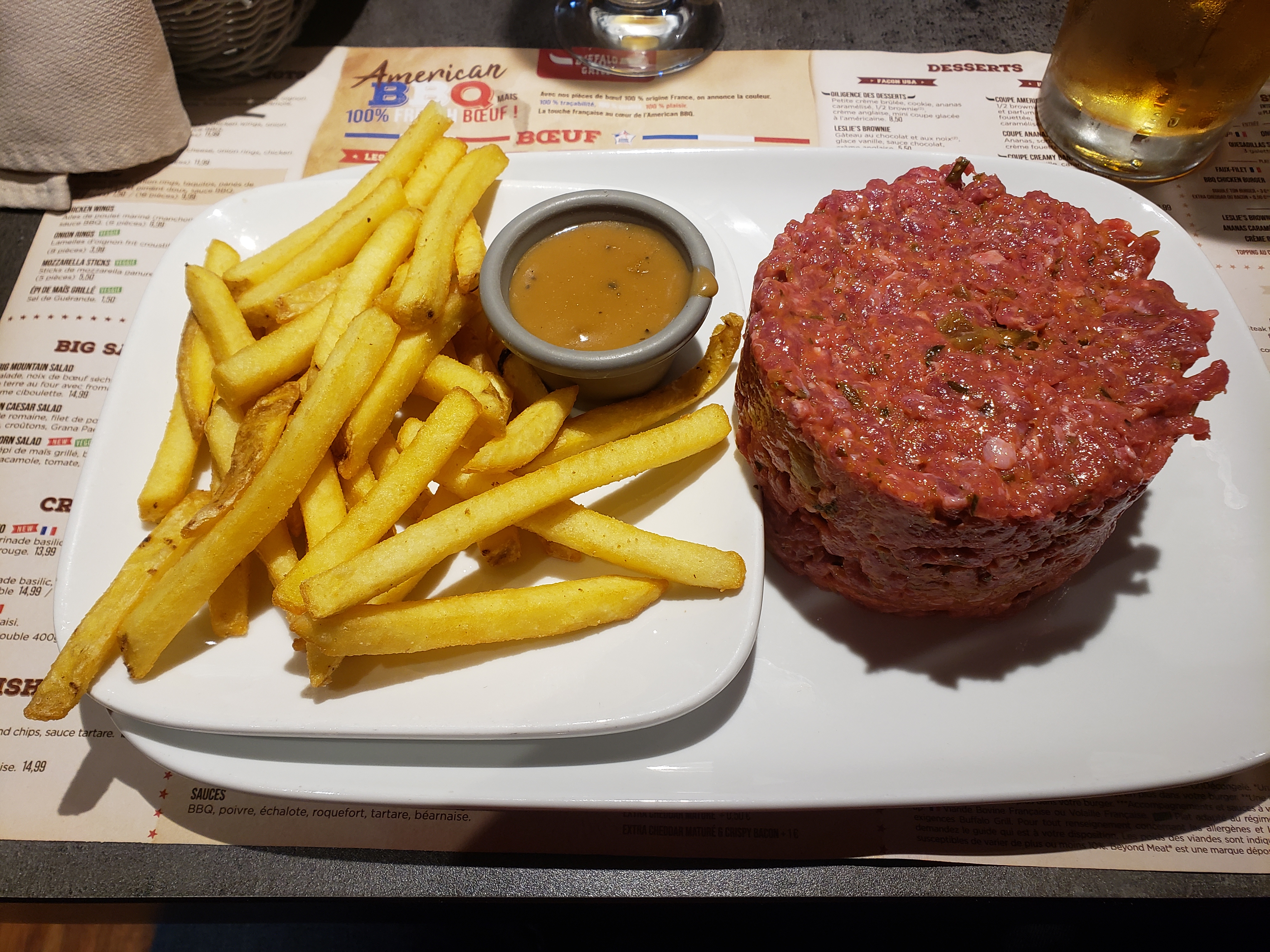 Service rapide et agréable, Le plat choisi Arizona spicy beef était décevant par rapport au prix, très sucré, peu épicé un gros morceau de gras. Ce plat n'est pas mauvais en soit mais n'a rien de spicy et ne vaut pas les quelques 16 17 euros surtout avec des frites industrielles.