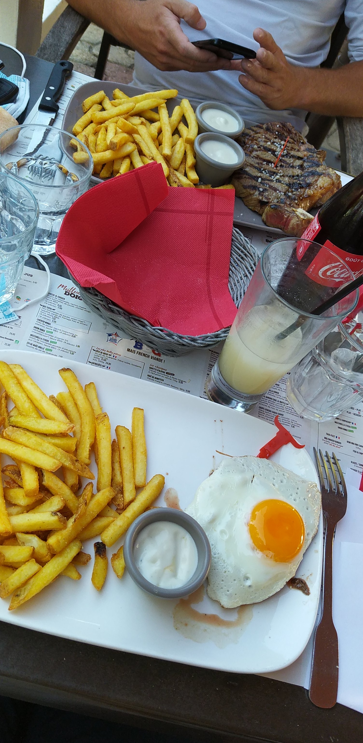 Bon accueil, et serveurs(euses) patient. Endroit propre. Terrasse agréable malgré la route a côté. Sauce roquefort toujours aussi bonne. Points négatifs, le petit pain carré n'est plus chaud comme avant et la côte de boeuf ressemble étrangement à une entrecôte.