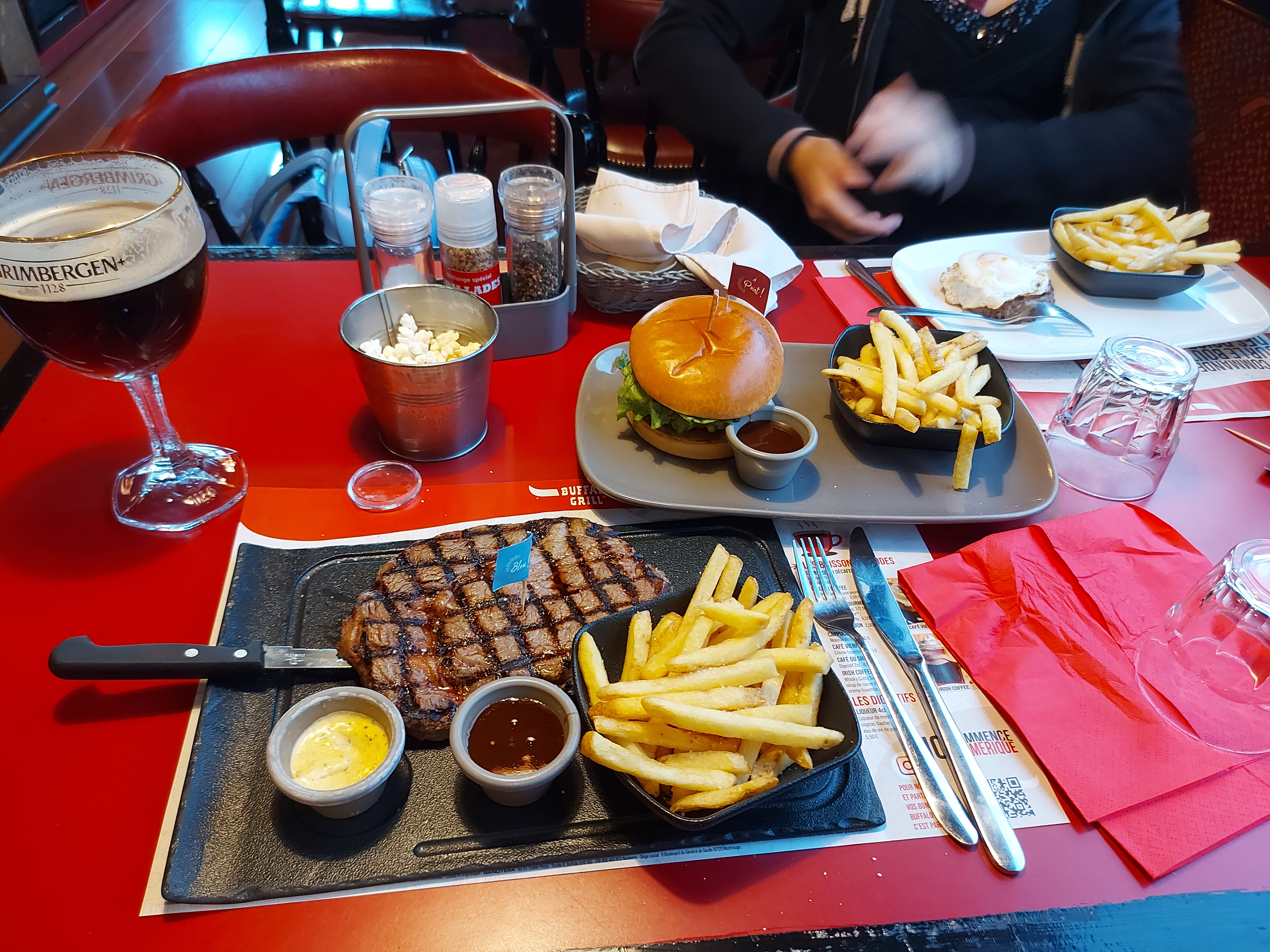 Nous avons eu une erreur de boisson et de sauce. Une cote de bœuf que j’ai particulièrement trouvée un peu trop salée et des frites trop cuite. Très difficile d’avoir un serveur à la minute, ils sont très débordés toujours entrain de courir les pauvres ce qui est très dommage car l’attente malheureusement reste tout de même longue entre chaque plat. Malgré tout notre serveur Bilel est agréable, souriant, poli et sympa comme tout.