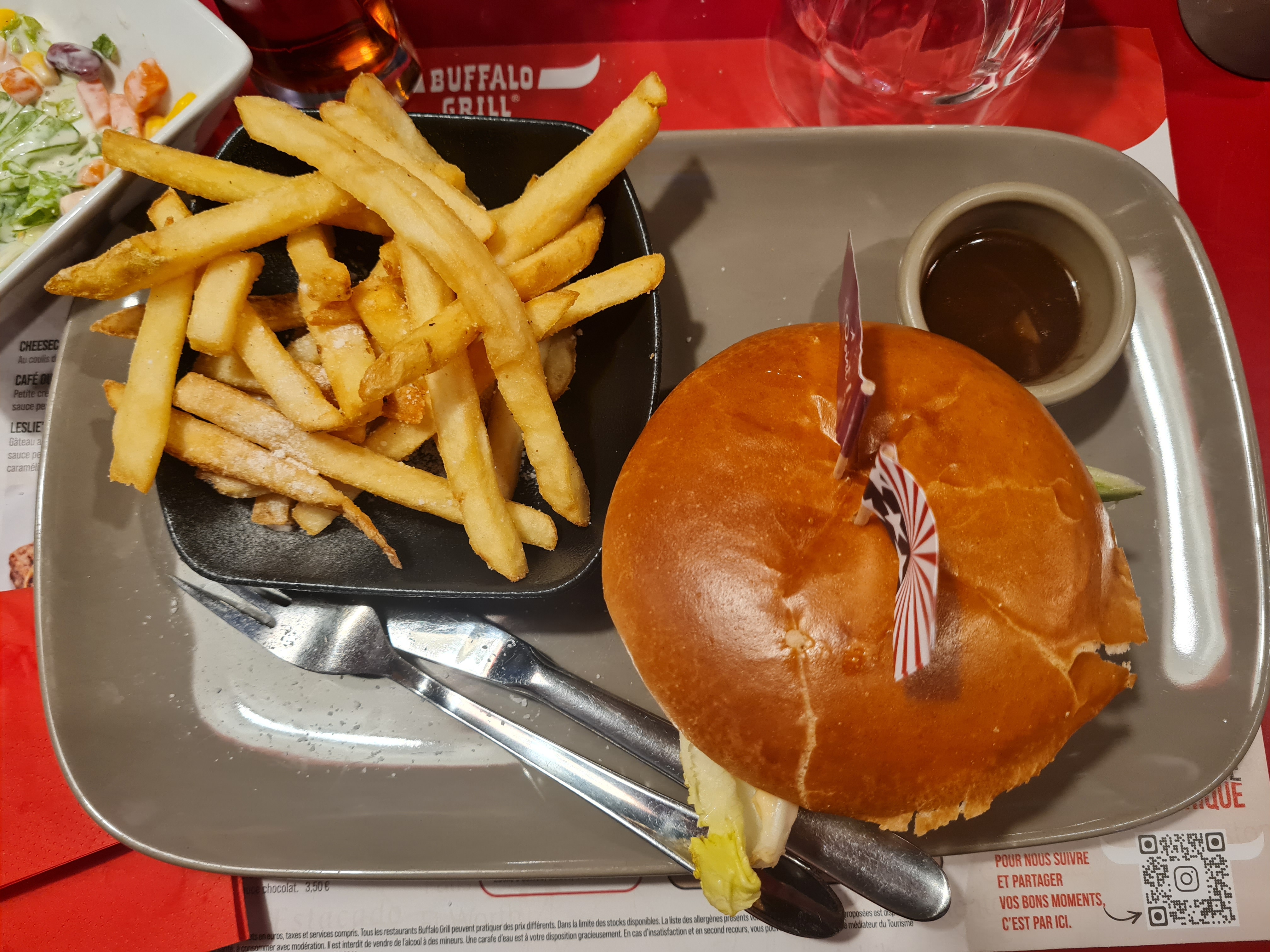 Restaurant égal à l'image de Buffalo, figé dans son origine. Le concept mériterai juste un coup de neuf. Service agréable et propre. La petite salade d accueil qui fait tjrs plaisir. Nos hamburgers étaient en tout comme sur la carte. Cuisson parfaite et les accompagnements aussi. Merci à Coralie pour son accueil et son service souriant. Toute nouvelle expérience pour elle en ce domaine, mais présence professionnelle bien présence.