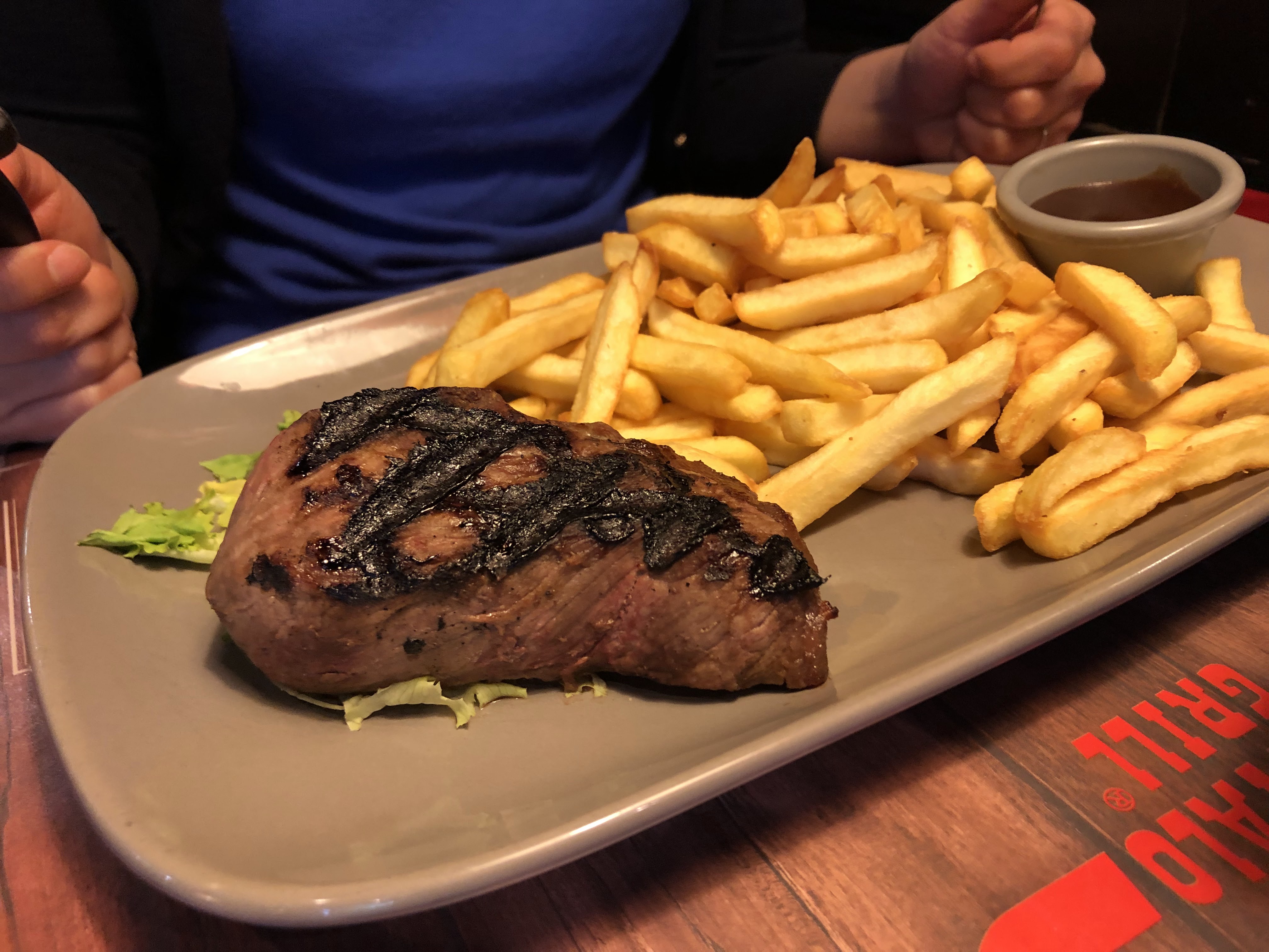A fuir de toute urgence!!! Le personnel est désagréable, pas un sourire ni rien. Des portions plus que minis. Monsieur avait commandé un steak bien cuit mais c’était archi cuit pire qu’une semelle! Et ne parlons même pas des frites immondes… Nous n’y retournerons pas. Dommage que nous ne puissions pas mettre 0 étoiles