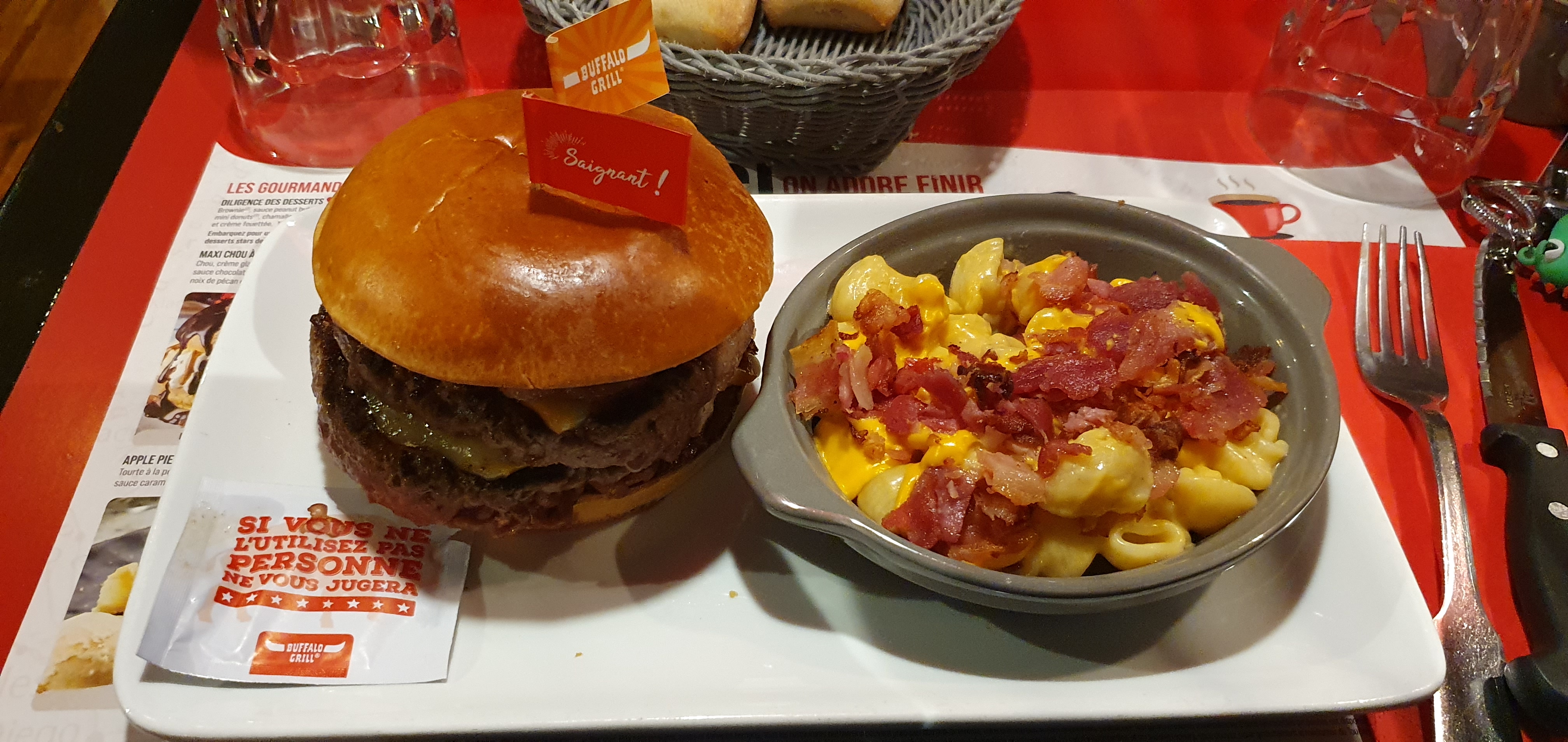 Buffalo franchisé donc ne prend pas les offres de la chaîne, on ne le sait qu'à la fin malheureusement. Serveuse au top (Stéphanie) et du coup je mets une étoile de + pour ça. Les plats n'étaient vraiment pas terribles par contre.(Sec)