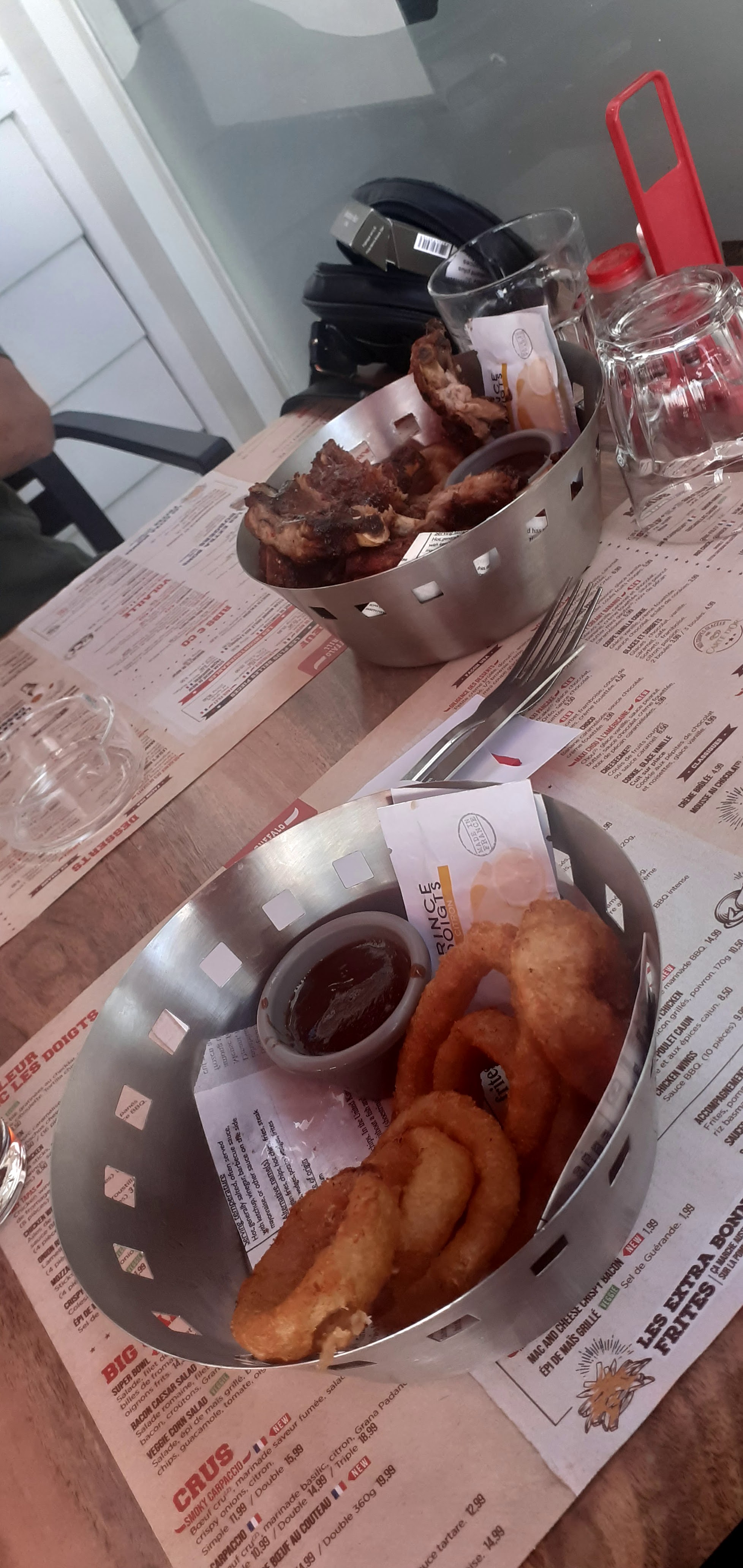 Testé en livraison, ça était une belle surprise ! 🙂 Plutôt très bien pensé pour la livraison, pas trop de sur emballages inutiles, des couverts, serviettes. Un panier bien complet, c'est certain !!! 😁 En ce qui concerne le ribs, très bon, mais baignant dans la sauce sucrée, et de trop, c'est dommage, ça en devient écoeurant. Un burger bon, qui fait le job sans problème. Mais des frites indus' pas cuites, donc bien dégueu' 🫤