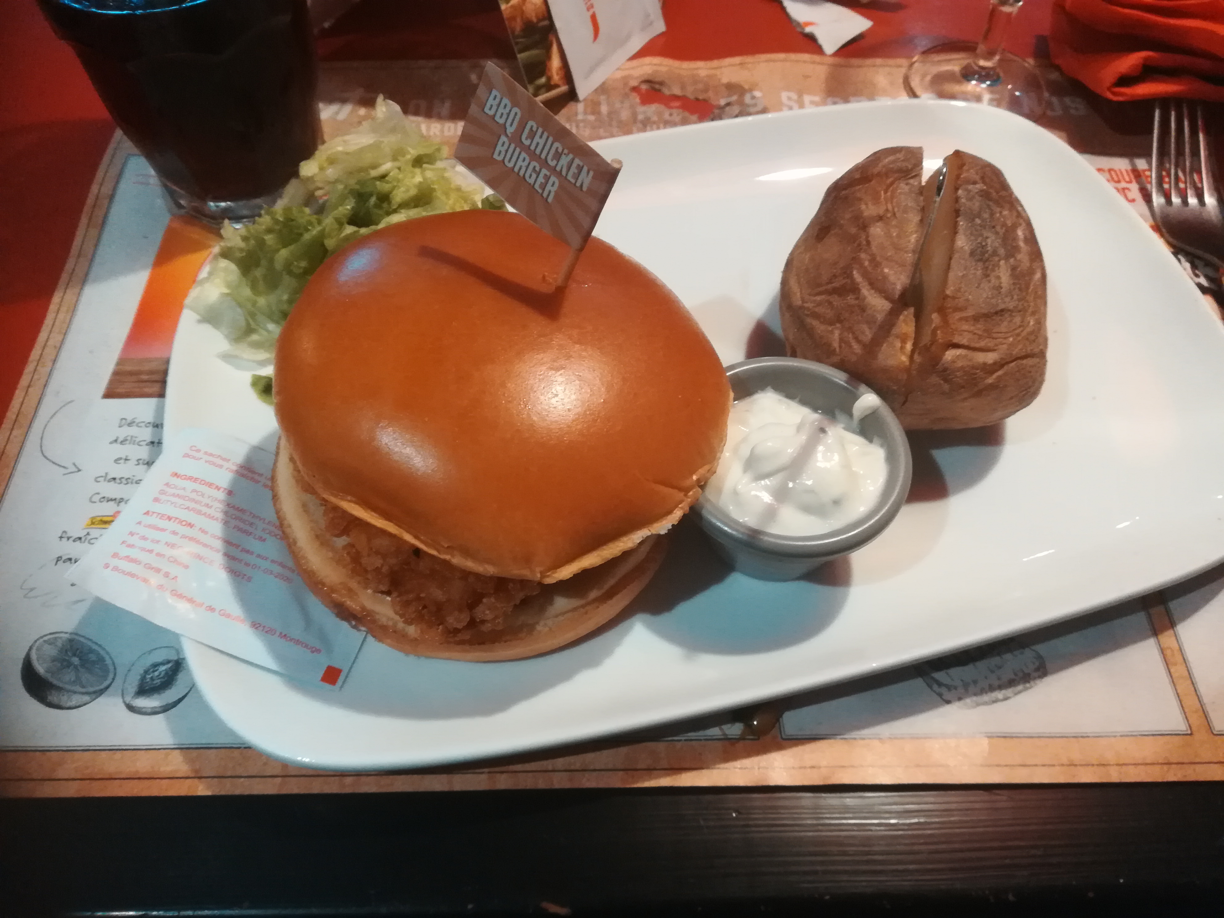 Grande déception : plus de menu teenagers pour les ados (qui ne peuvent pas non plus commander un menu kids), la note est donc plus salée. Plus de brochette de bonbons sur le verre du menu kids. Le pain des 2 hamburgers était grillé (noir). Et mon assiette était usée sur les côtés, pas appétissant. ...on a connu beaucoup mieux de Buffalo ! Dommage 😢